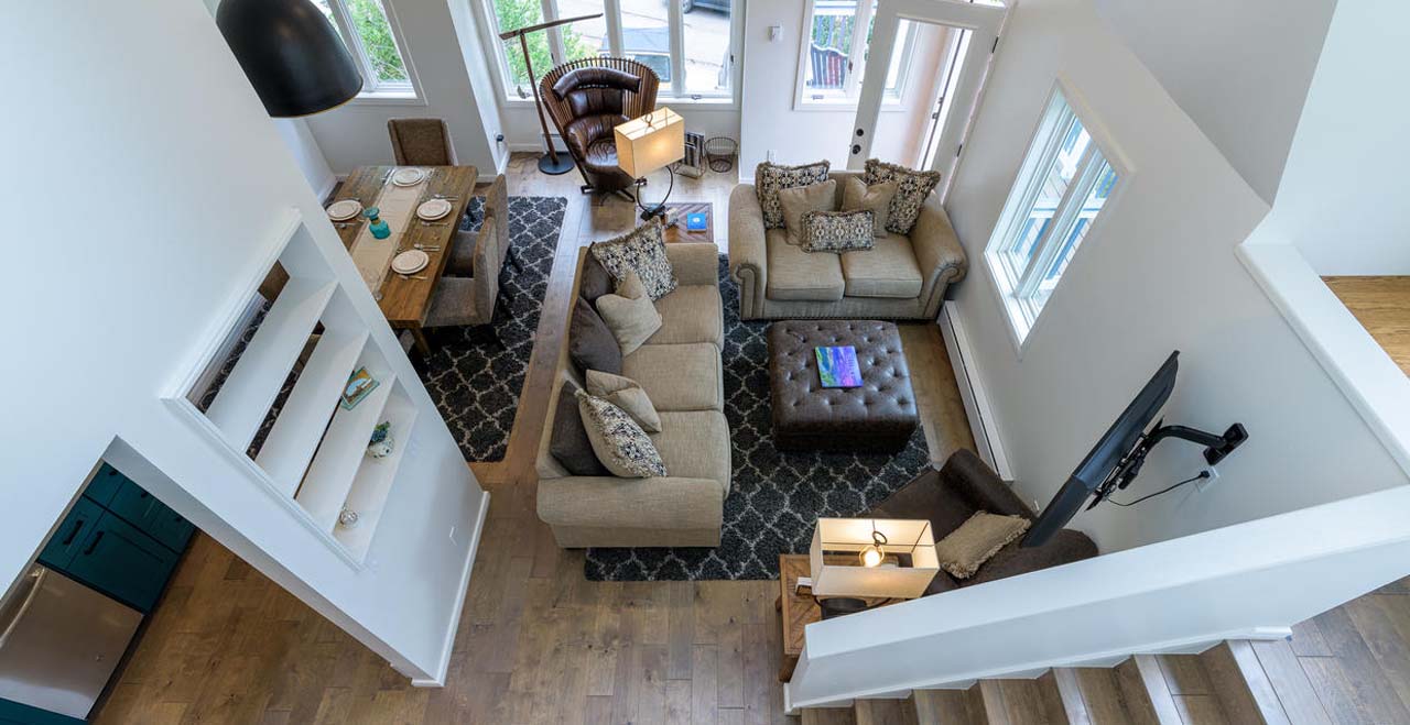 The Coonskin ski lift is just a 5-minute walk away, and from your balcony, you can look out over the valley, or watch the skiers descend into town. The location is certainly unbeatable, yet it’s the luxurious interior and spacious layout that will have your family or group of friends coming back every year. With four bedrooms, two bathrooms, three levels, and a large outdoor living space, up to 10 guests can lounge together or carve out a private space for themselves.