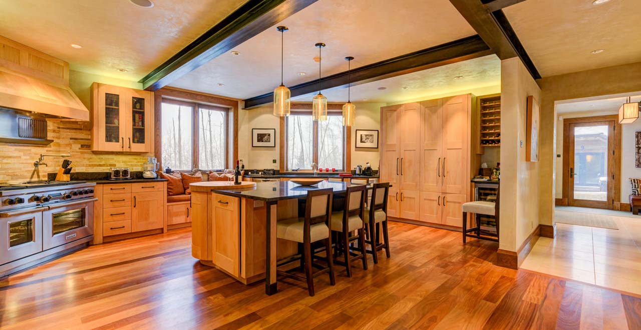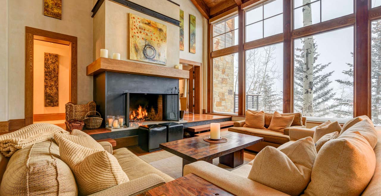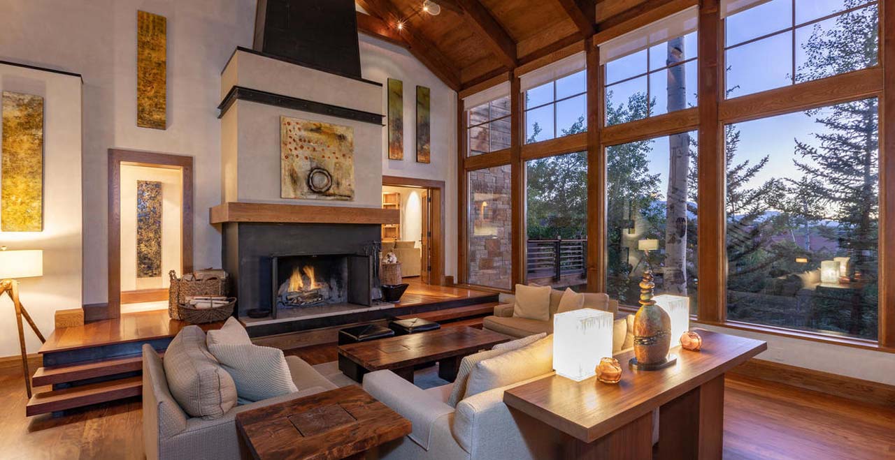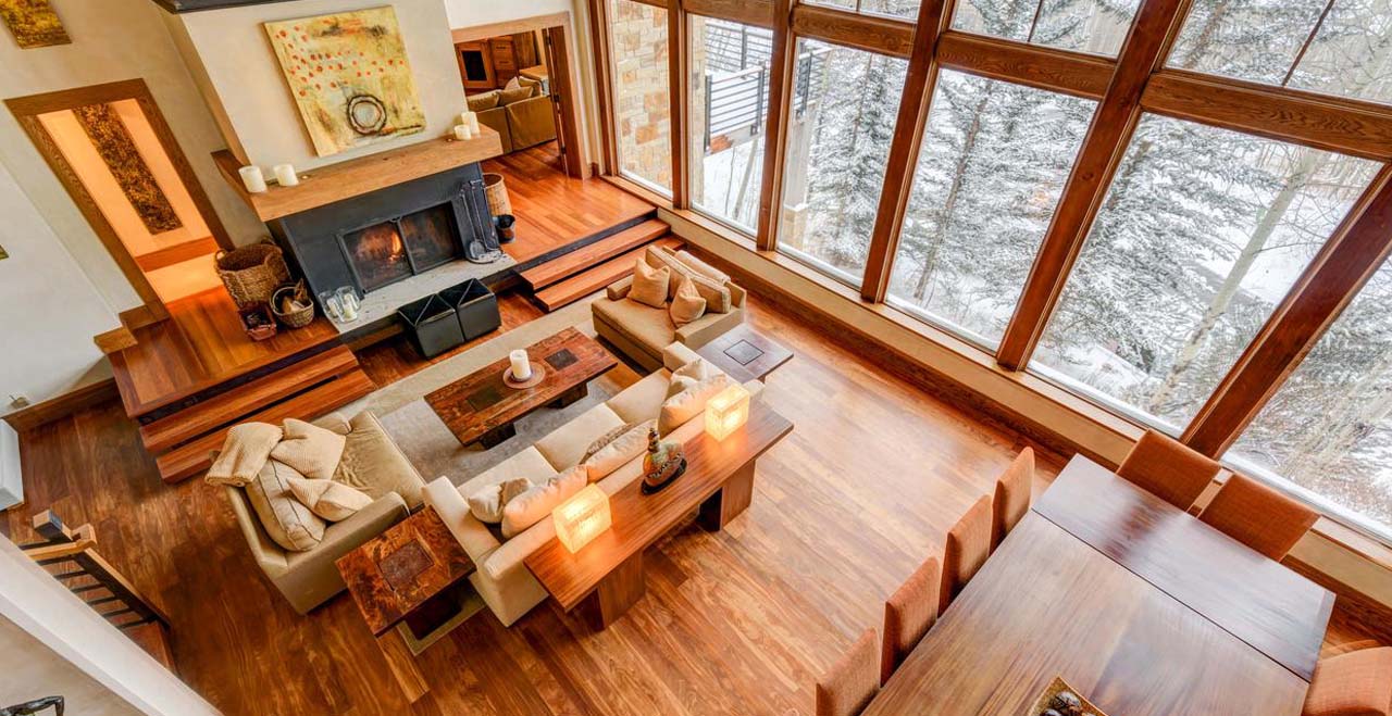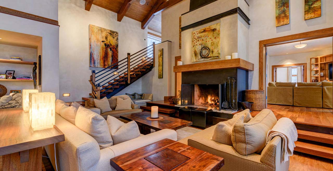 So let’s get right to all you can expect. And we’ll begin in the main formal living area - or great room - that boasts an open design, tall ceilings, giant windows, exposed beams, hardwood floors, and comfortable formal seating by the fireplace to help you catch your breath before you explore the rest of your new vacation rental. We know. That room alone can be quite overwhelming. But move on you must! There’s just too much to see.