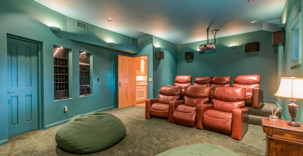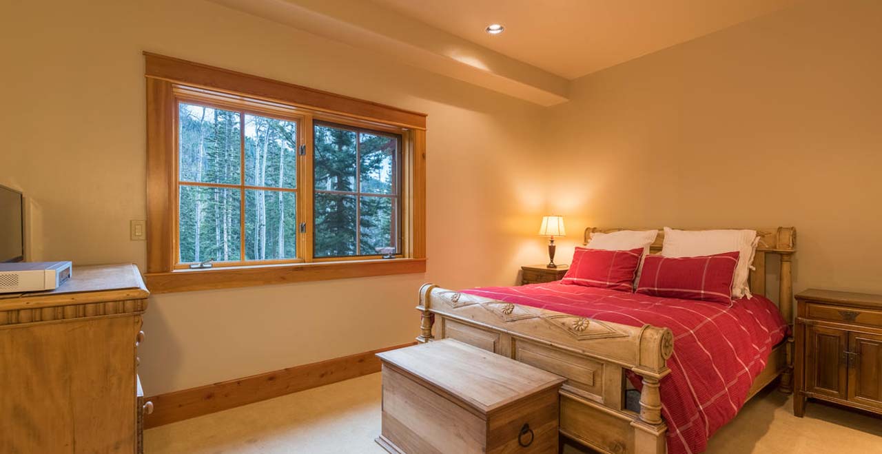 Once inside, a wealth of options await. Settle in to the main living area around the TV or a crackling wood fire to enjoy a serene Mountain Village evening, or head through the patio doors to enjoy your own private hot tub and outdoor fireplace. Prepare a meal in the fully-equipped kitchen, where a gas stove and spacious countertops make cooking a breeze. On the first floor, prepare a snack in the kitchenette and screen a movie in the in-home theater, complete with a projector and reclining leather armchairs.