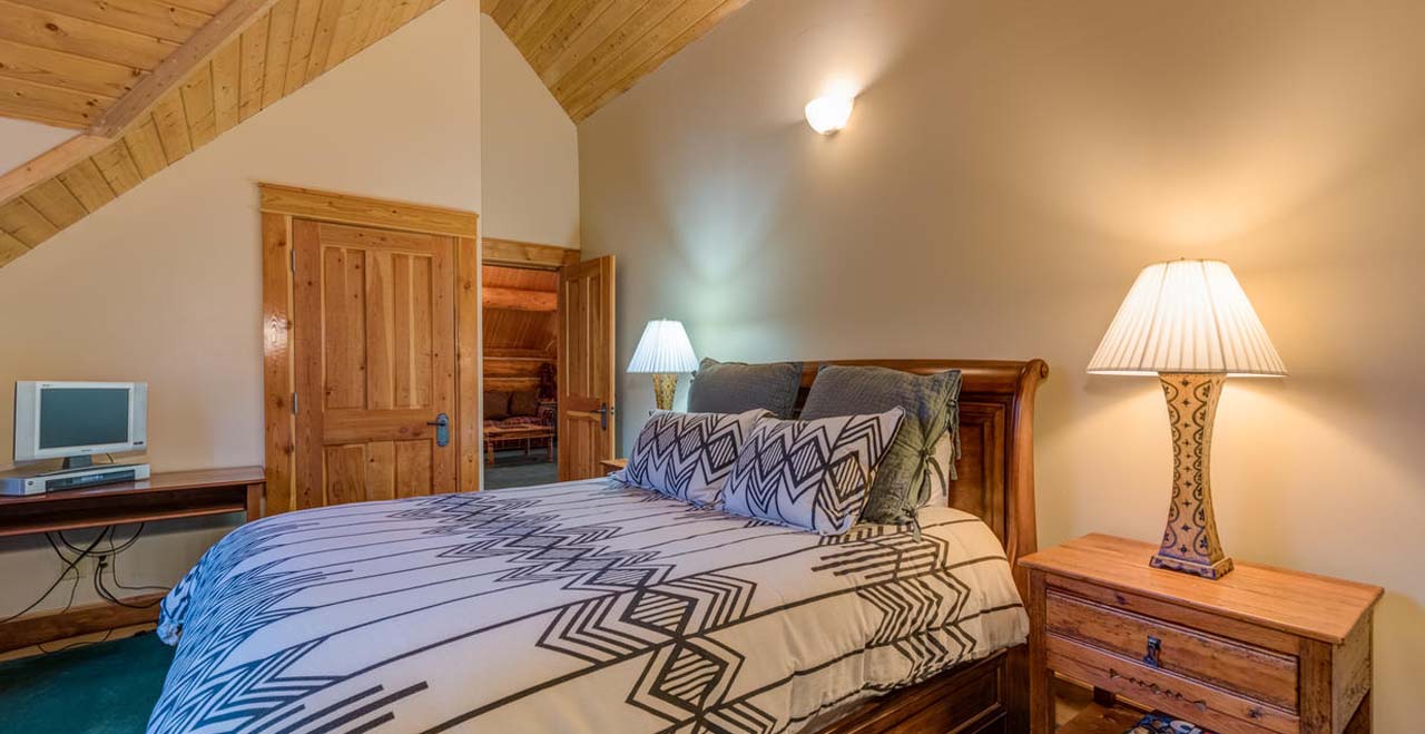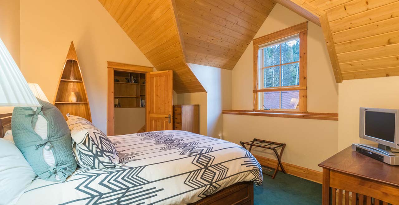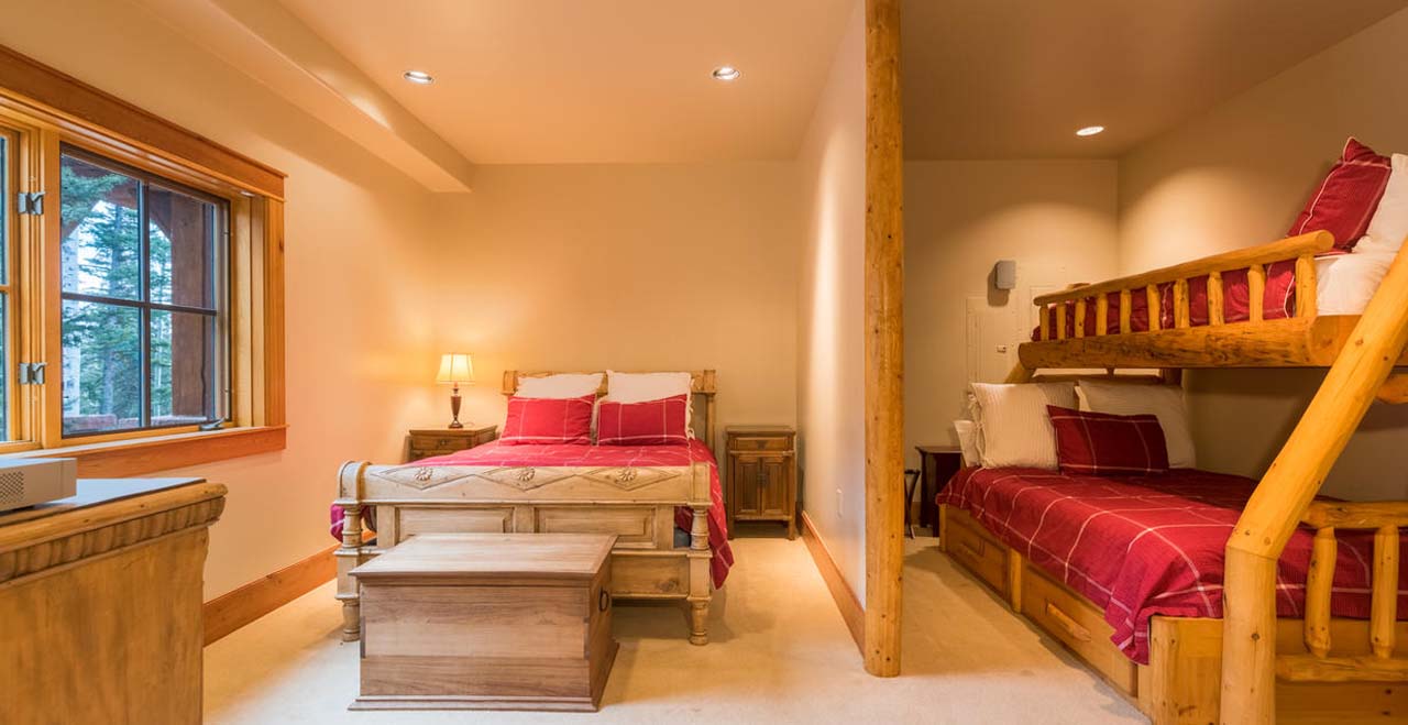 Head upstairs to find two additional guest rooms, both with queen beds, and a shared full bathroom, or down to the first floor to find a guest room with a queen bed and bunk that sleeps five in all.