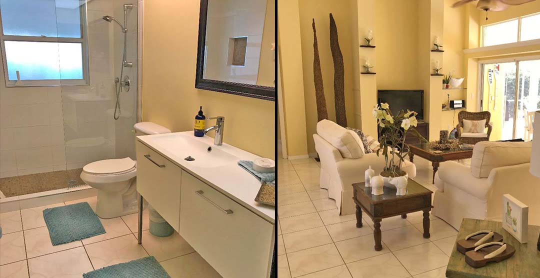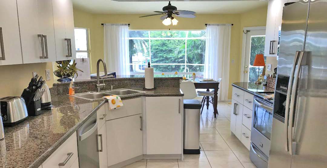 Palm Paradise is a spaciously cozy home located in a serene neighborhood in southwest Cape Coral. This quaint vacation residence, recently furnished and decorated in warm colors, accentuates the perfect home away from home feel. Palm Paradise is the ideal property for those allergy sufferers as this home is tiled throughout. With 3 bedrooms and 2 bathrooms, Palm Paradise offers 2 king bedrooms and a bedroom with 2 twin beds. There is an additional day bed that sleeps 2 guests. Two of the bedrooms have TVs. The living room boasts a TV, DVD player and stereo; with Wi-Fi accessibility throughout the home. For the chef enthusiasts, the kitchen is well-equipped with stainless steel appliances to make each meal a culinary masterpiece.