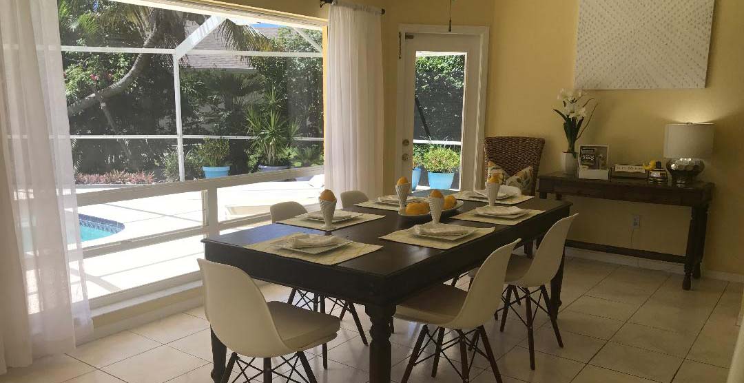 After a day of fun in the sun, or breezes on the seas, enjoy the waterfront view of the canal from the dining area. For a more air-freshening meal amongst nature, indulge in the wonders of dining alfresco as you enjoy the surrounding views from the outdoor dining table under the covered patio. The veranda provides blissful southern exposure. The lanai has plenty of pool furniture, deckchairs and a BBQ grill. Take in some exercise or simply wade in the crisp waters of our large private pool; equipped with electric heating and a pool cover to keep those temps just right.