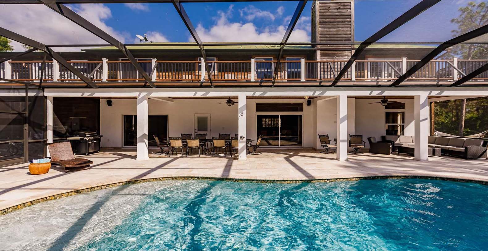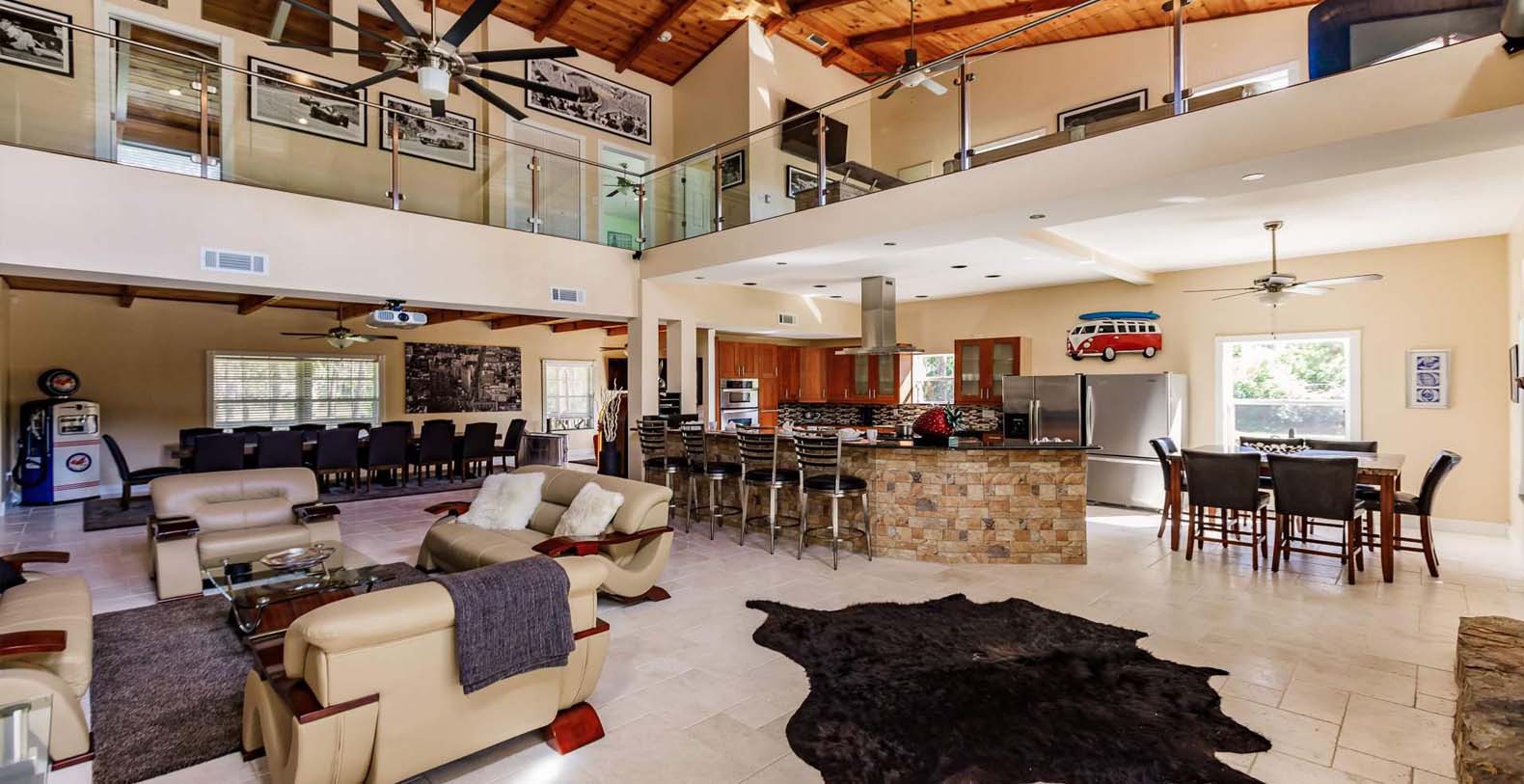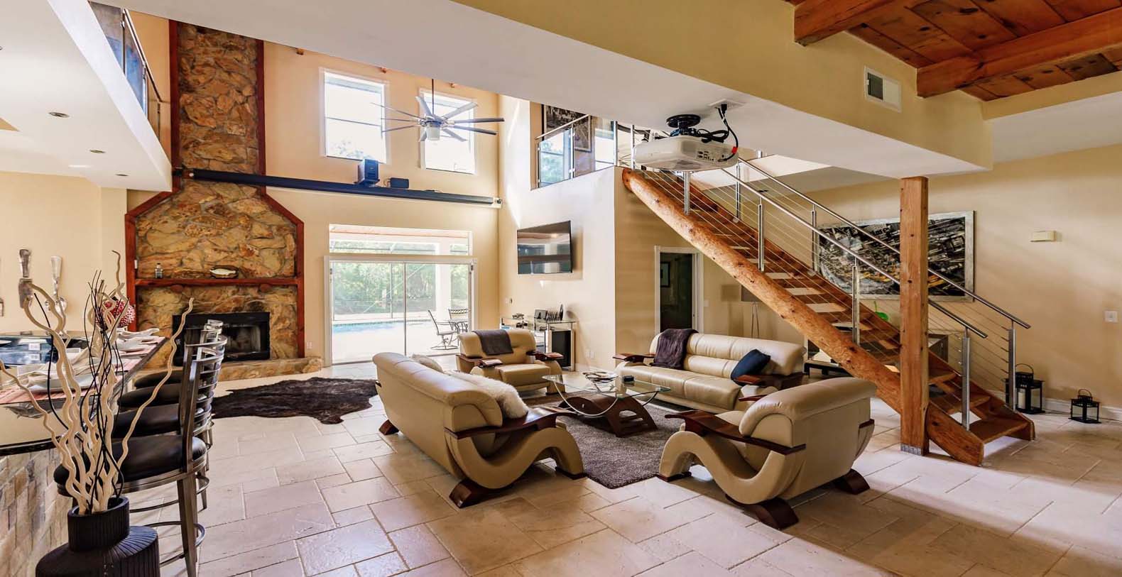 Wild West Lodge truly pays homage to the Wild West. Our beloved frontiersman would have appreciated the modern and luxurious amenities (including indoor plumbing!). As with any true Lodge, the spectacular entry hall welcomes you with a warming fireplace, and the love for ornate woodwork is visible just about anywhere. This is a unique offering in Cape Coral, the perfect setting for larger families, groups or gatherings. Sunsets are celebrated on abundant porches and balconies, or the surrounding prairie. There is ample parking for your cars and horses, and six bedrooms offer plenty of space for you and your companions. Internet Access Point for those frontier folks who just can’t do without it.