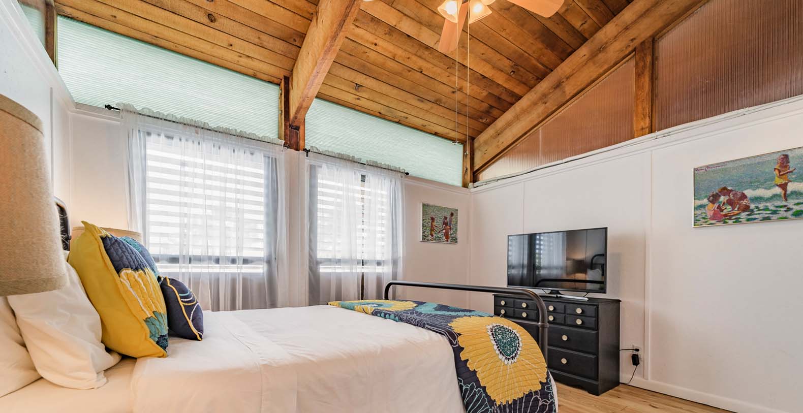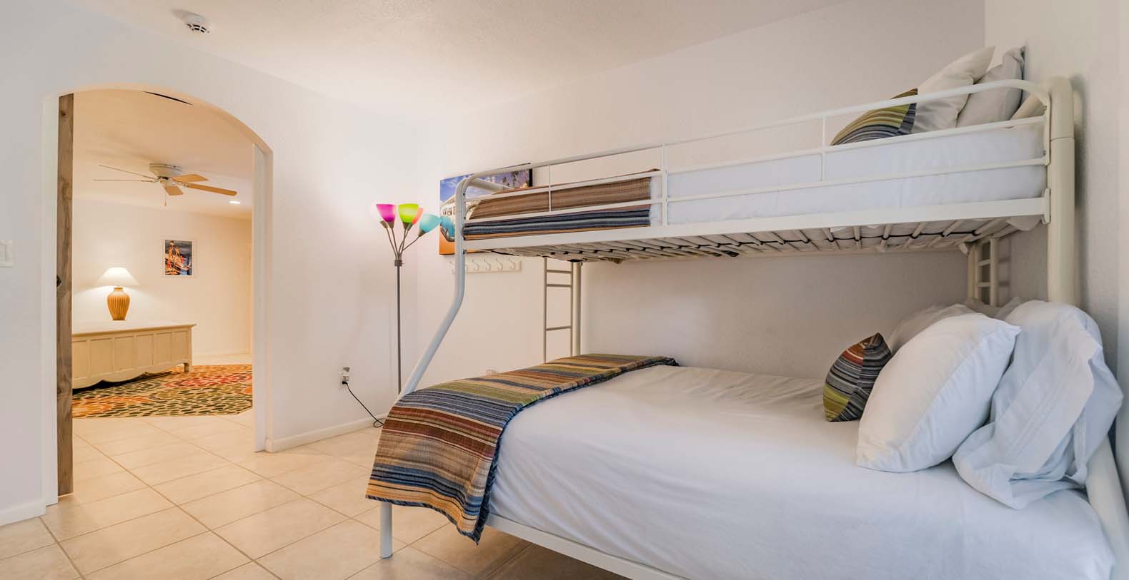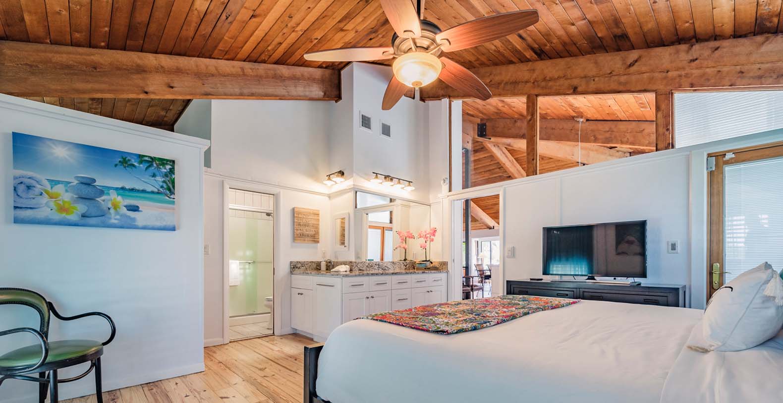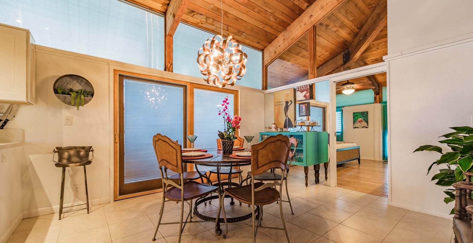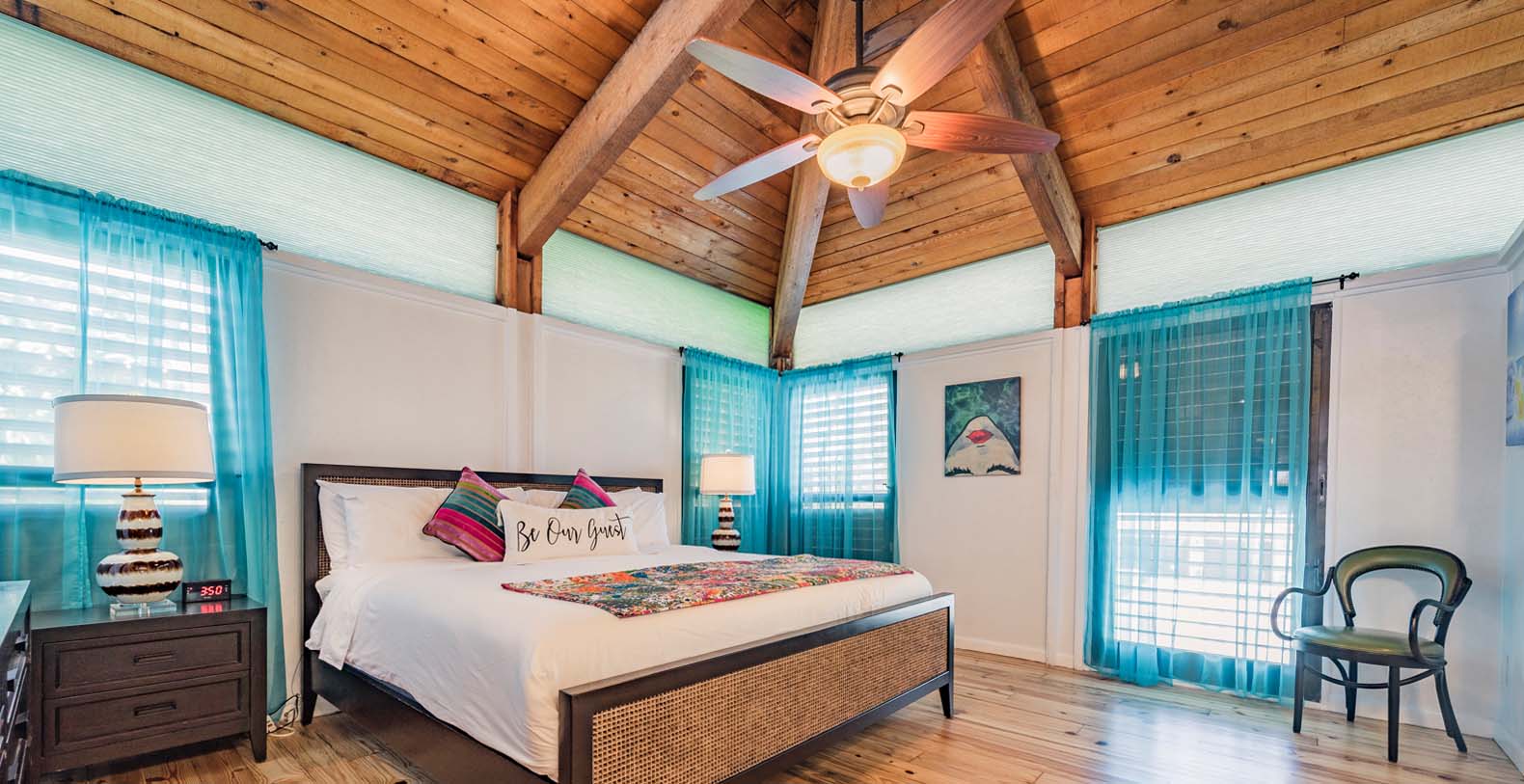 Nautical Dream is a two-level 2,900 sq. ft. house with an internal spiral staircase and dramatic 15 ft. open beam ceilings. Upstairs is a master suite and bathroom, two additional bedrooms that share a bathroom, a new open-space kitchen, dining area, living room with a state-of-the-art 4k 65” curved TV, and Florida room (with a desk and day bed). There is also an outside upper deck. This combination provides a great upstairs area for entertaining and watching the boating action on the Intracoastal.