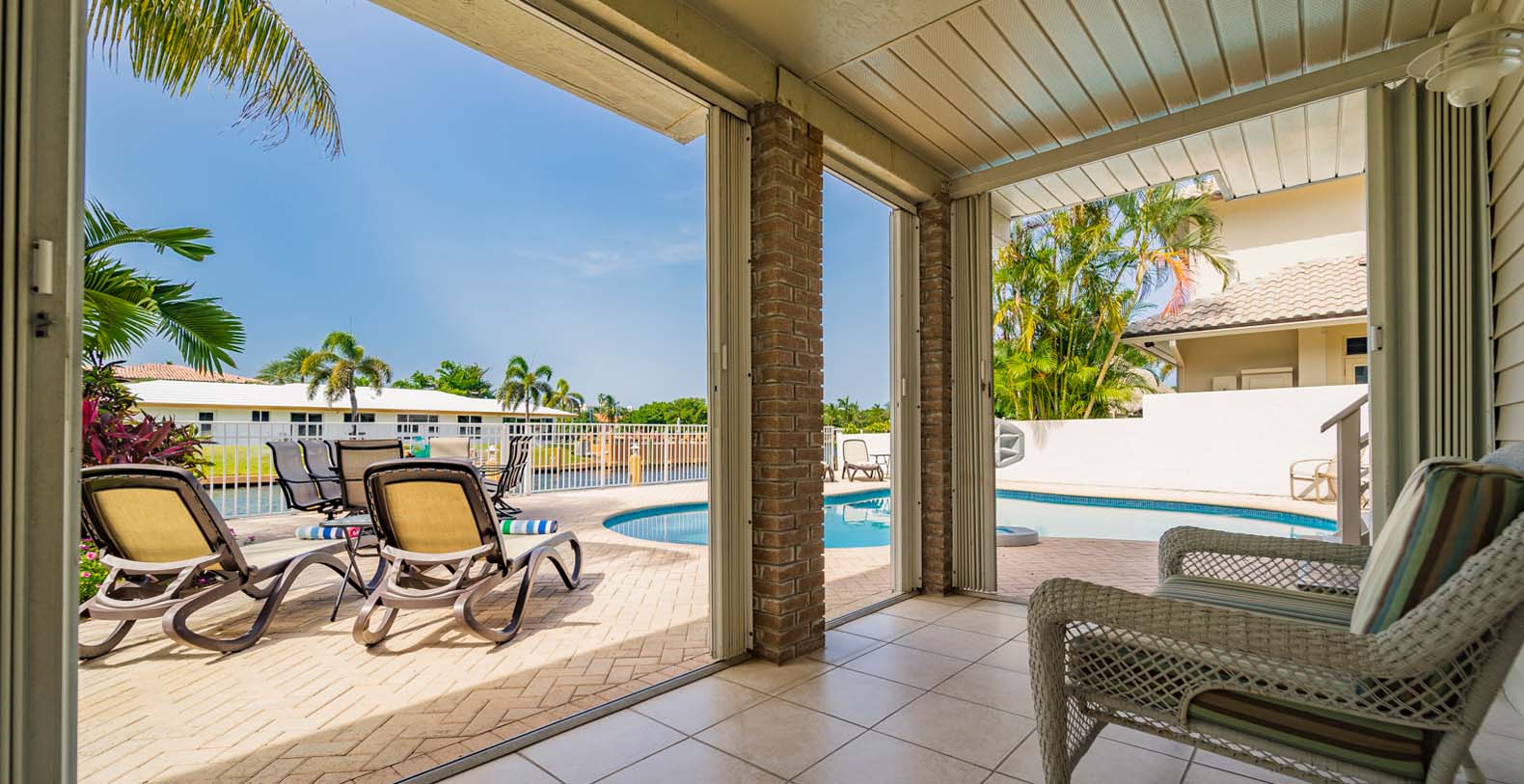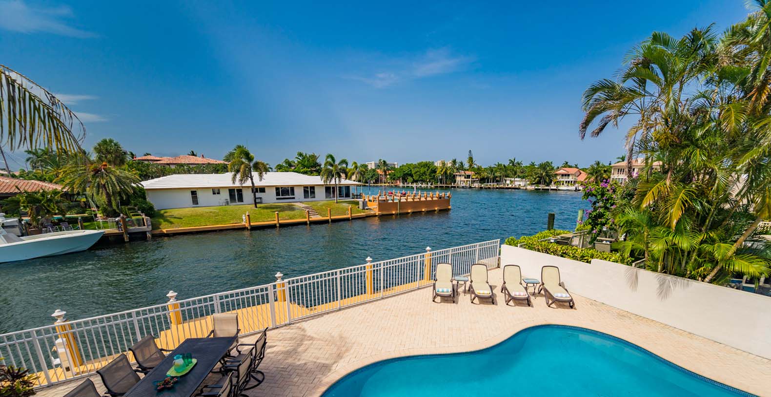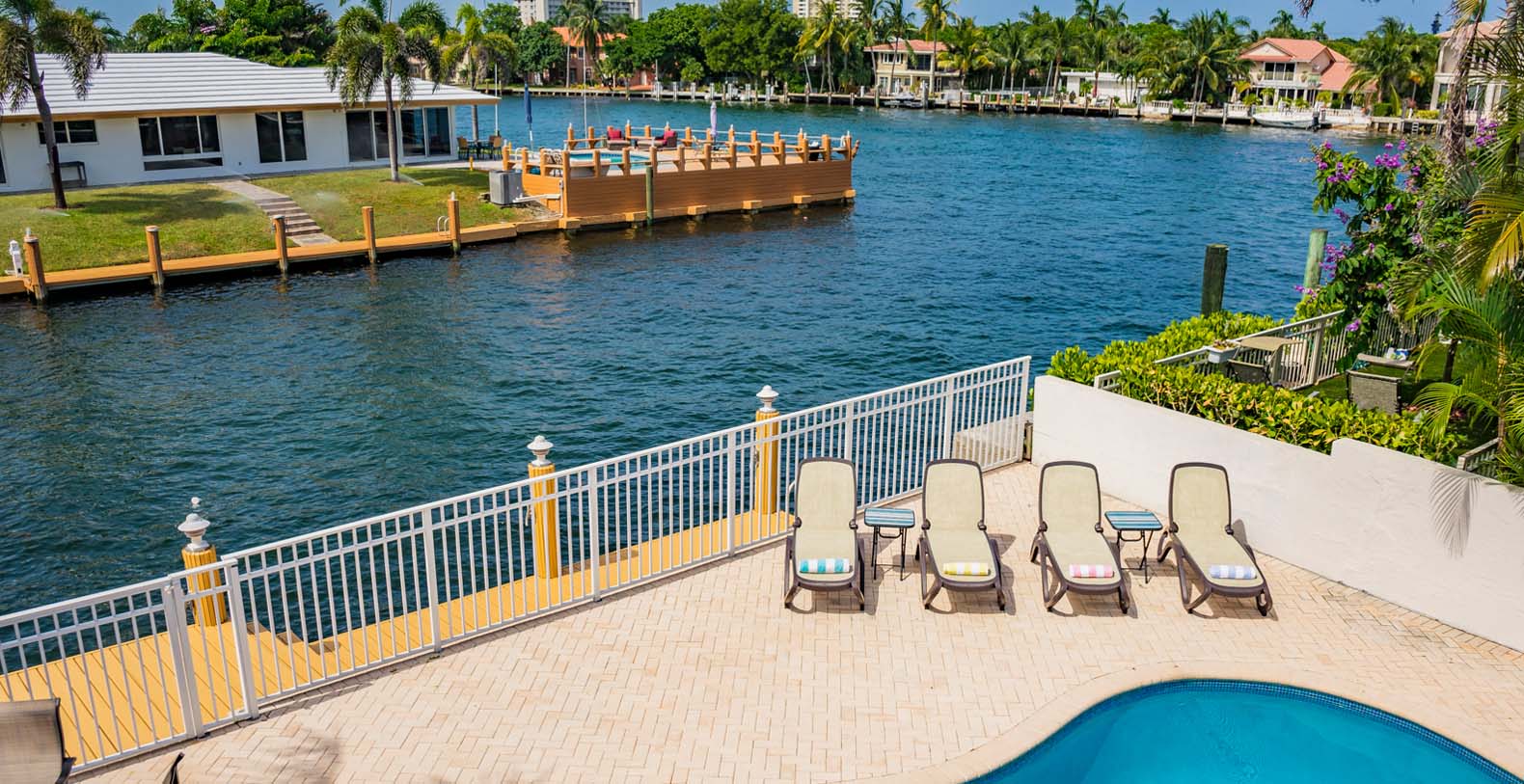 Nautical Dream, located in Pompano Beach, a Key West style house (built on stilts) and since been remodeled to enclose the entire structure. It is located at the end of a quiet cul-de-sac 90 feet from the Intracoastal on Santa Maria Waterway. Why is this important?