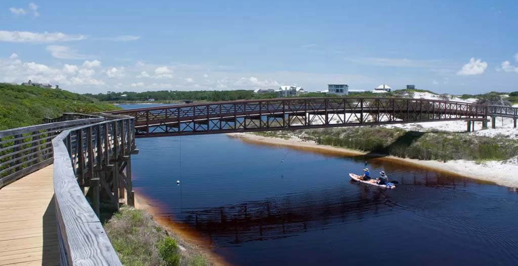 The surrounding area is a haven for outdoor enthusiasts. Over 20,000 acres is state-owned and therefore protected from future development. It is home to one of the most beautiful beaches in the nation, South Walton Beach, and also has 17 fresh and salt-water lakes and the Choctawhatchee Bay.