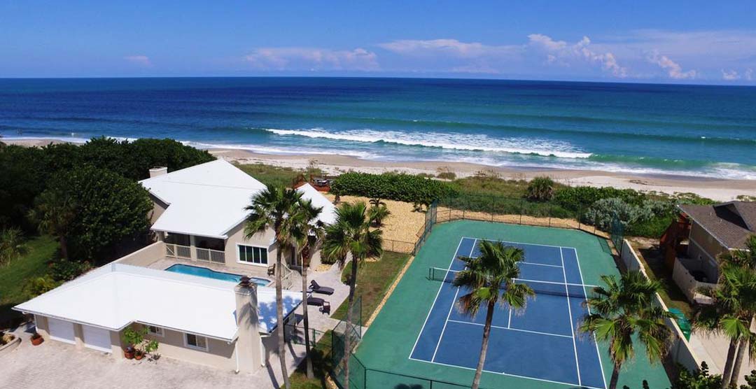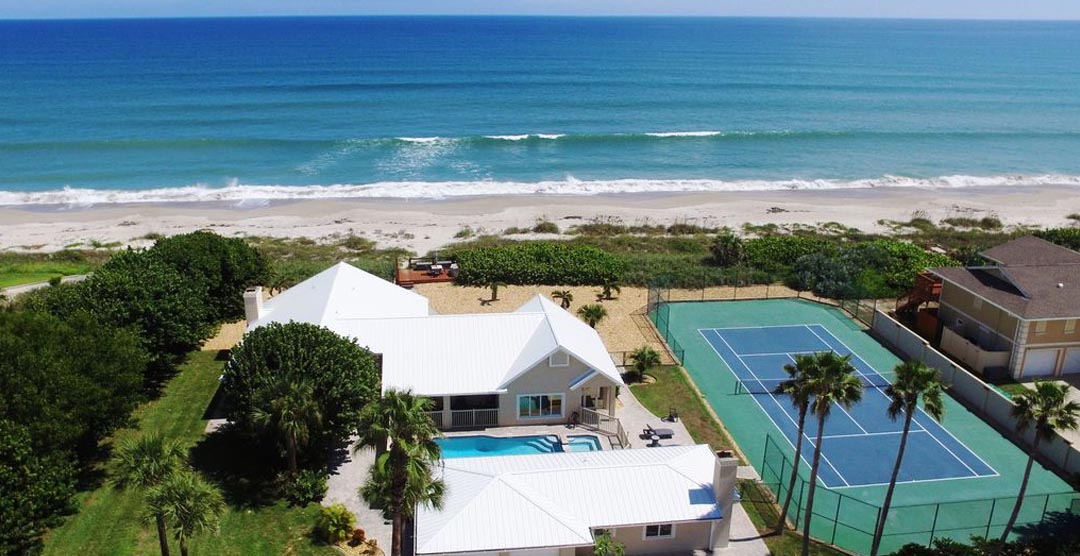The Beach Dreams offers an unsurpassed vacation experience unmatched by any other hotel, resort, or vacation home. This exquisite 5 bedroom, 3.5 bath resort-style estate provides ultimate privacy with its 2 acres of prime beachfront luxury, directly on the Atlantic Ocean in Indialantic. Newly renovated from top to bottom and inside out, the Beach Dreams boasts pure luxury from its quality finishing’s to its brand new high-end furniture. Enjoy your own professional full-sized tennis court overlooking the Atlantic, as well as a private pool and spa. The estate is situated in the heart of the Space Coast; and is in close proximity to all of the desired vacation amenities. Lose yourself with the Atlantic Ocean in your backyard – no streets to cross and no crowded hotel elevators … Let the Beach Dreams be your vacation resort in paradise!