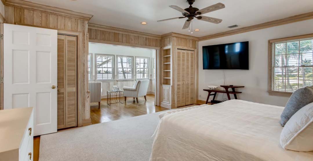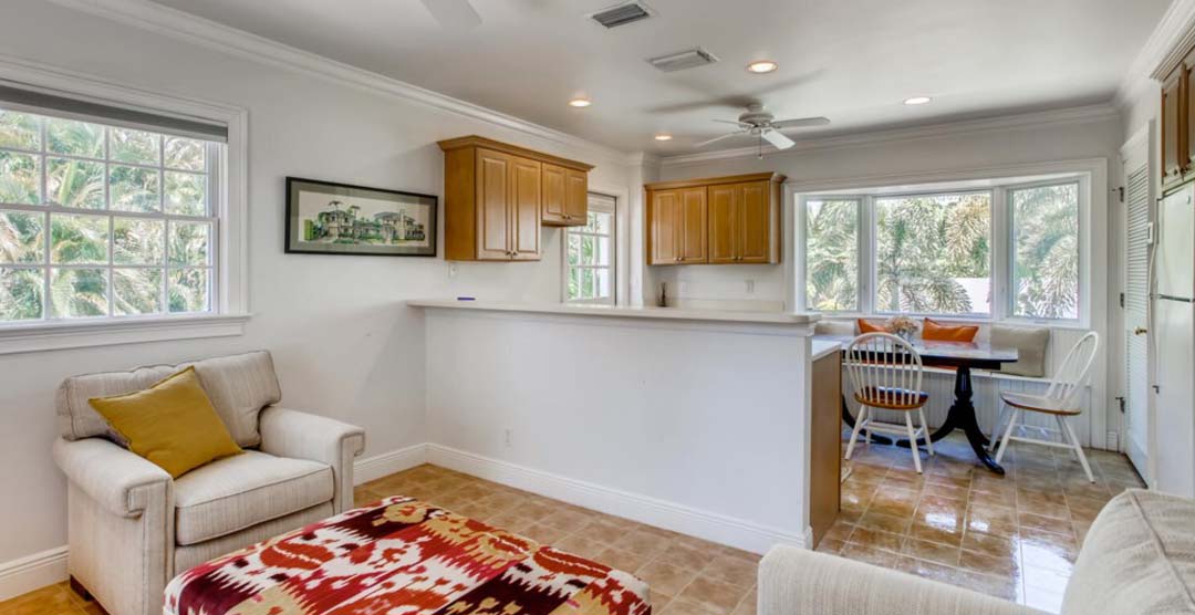This beautiful home offers large bright rooms overlooking the water and Palm Beach Island. It is a 4 bedroom family house with 4 Bedrooms and a staff bedroom in main house. A comfortable 1 bedroom apartment with living room and kitchen is located over the garage. There is ample pool and garden area for entertaining. When here you are walking distance to the best South Dixie Hwy restaurants and close to downtown West Palm Beach and the Island of Palm Beach.