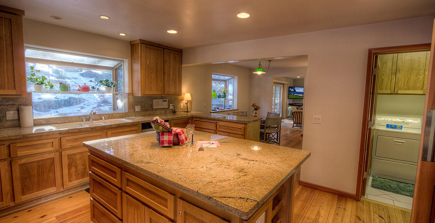 The living room is perfect for socializing, with tons of seating and a beautiful wood burning rock fireplace, there are lakeviews from the master suite, 3 gas burning fireplaces, and I won't forget to mention the kitchen. Wolf Range, enormous professional refrigerator, dual ovens, unlimited granite, dining nook for 6 and the formal dining room seats 8! The 3 upstairs bedrooms have their own private bathrooms and the master suite has a huge 2 person jacuzzi! This home is wonderful and any time of year it will be perfect!