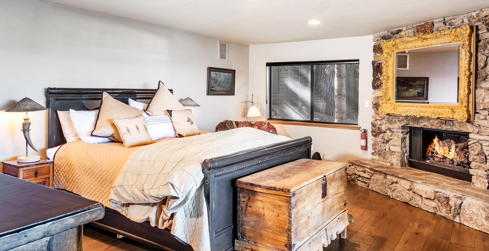The predominant feature of the main hall is the floor to ceiling fireplace in the living room. With an oversized wood burning firebox capable of keeping you in the mood during your escape with logs up to 30 inch. All the irons are hand wrought and oversized to accommodate large logs. A plentiful supply of firewood is complimentary. The master suite fireplace is gas log and can be operated by remote allowing for the convenience of instantaneous warmth and glow.