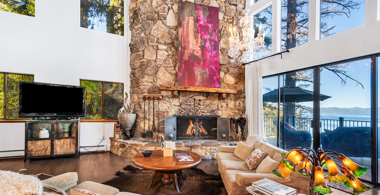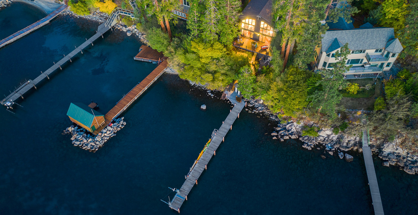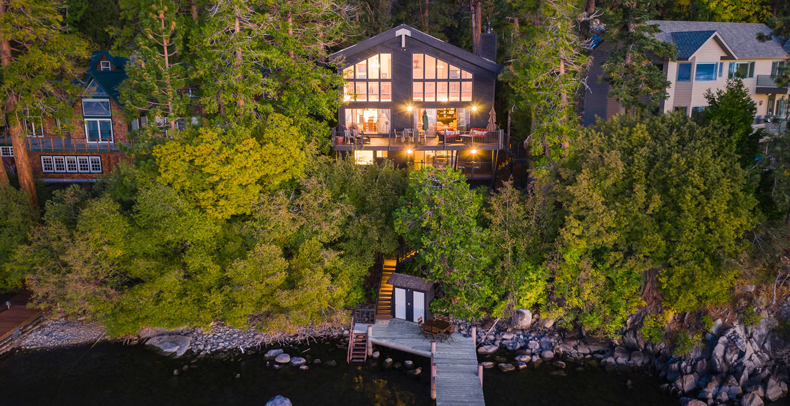 VIlla de Lago, The Lake House, is located in a secluded enclave north of historic Cave Rock Nevada. Nestled in pines that sweep down through the riparian shrubbery from the home to the properties private pier and buoy. Whether by day or night the lighted staircase will carry you to the magic of the bouldered shoreline where you can spend your time relaxing to the sound of the waves and Tahoe’s ever changing panorama or take a dip from off the pier and swim in waters as clear and brilliant as our skys.