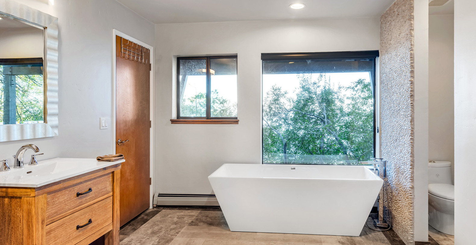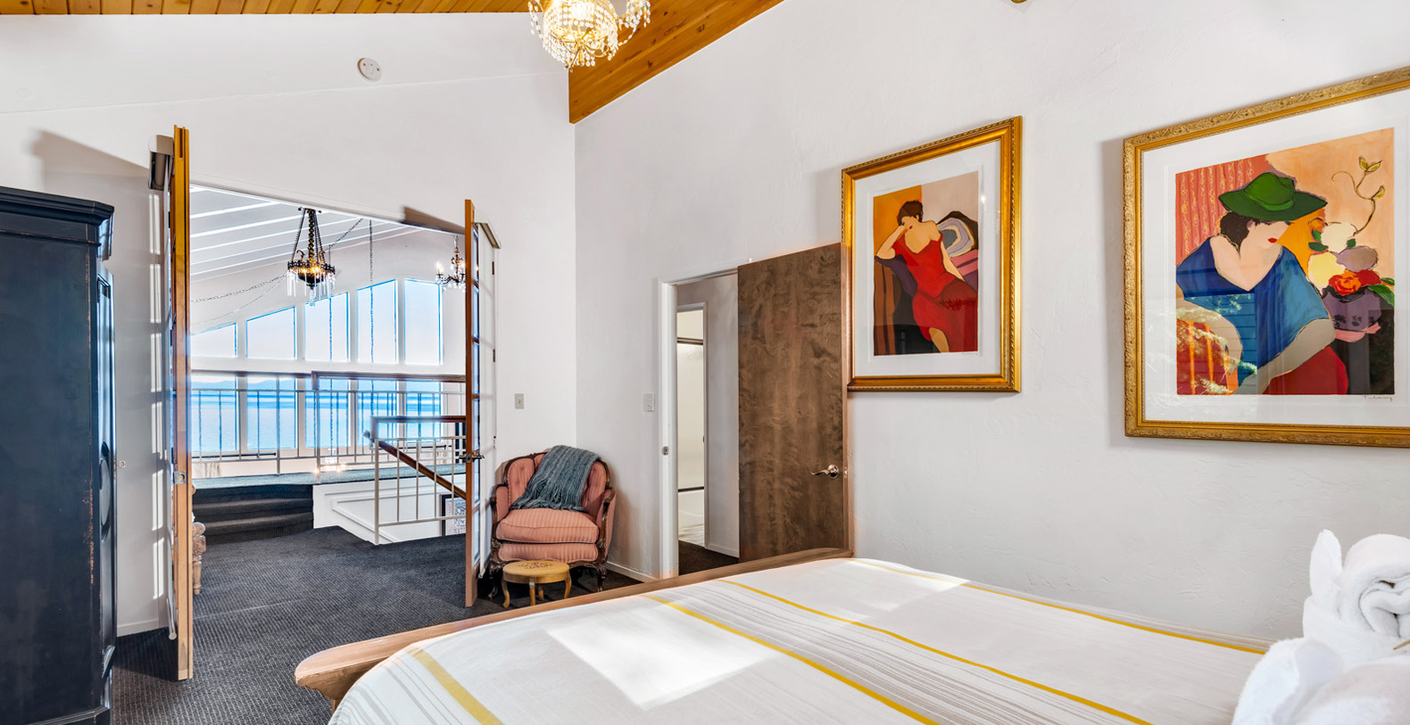 Both upstairs bedrooms have queen beds with luxury linens and bedding and you will enjoy Lakeview’s from either choice. Both bedrooms are furnished with antiques and modern appointments. The bathroom is shared. The loft is accessible on the same level as the bedrooms.