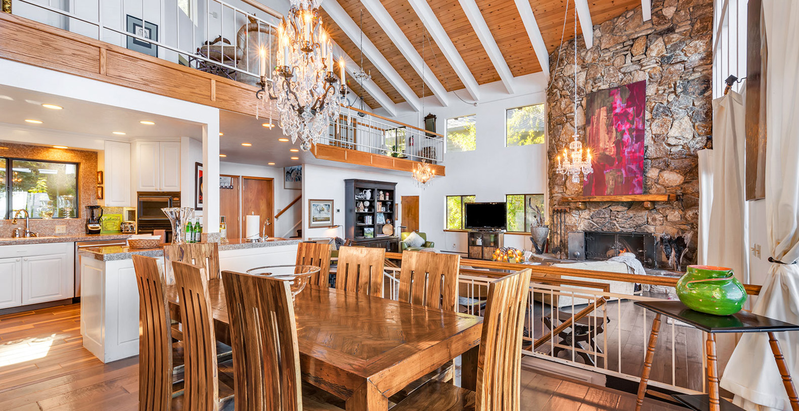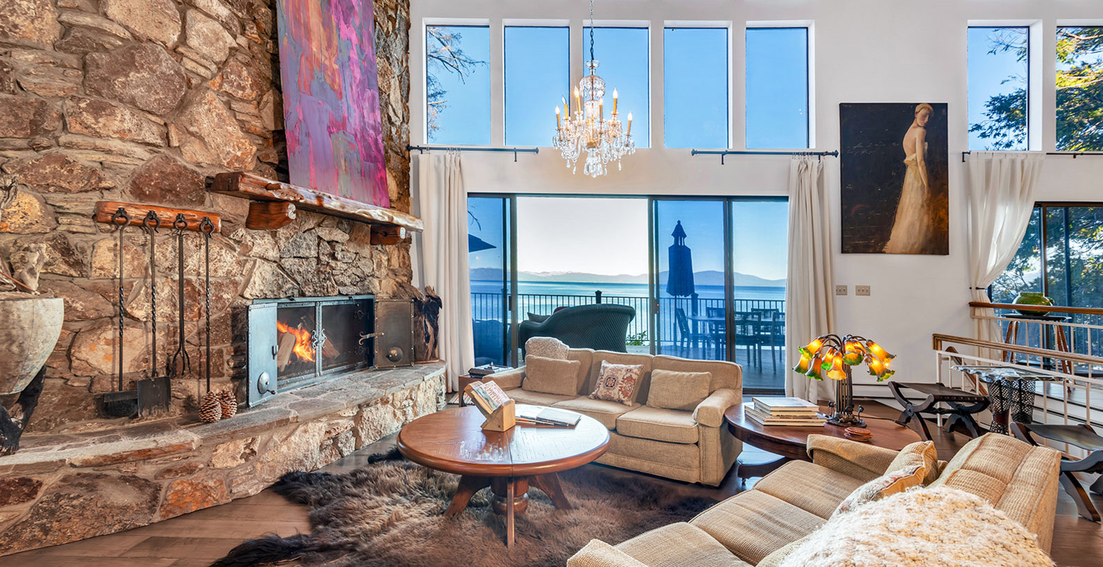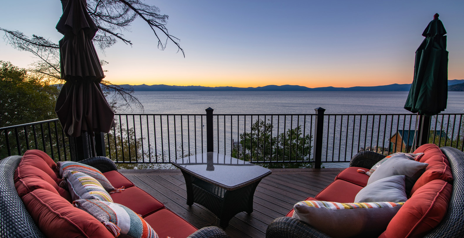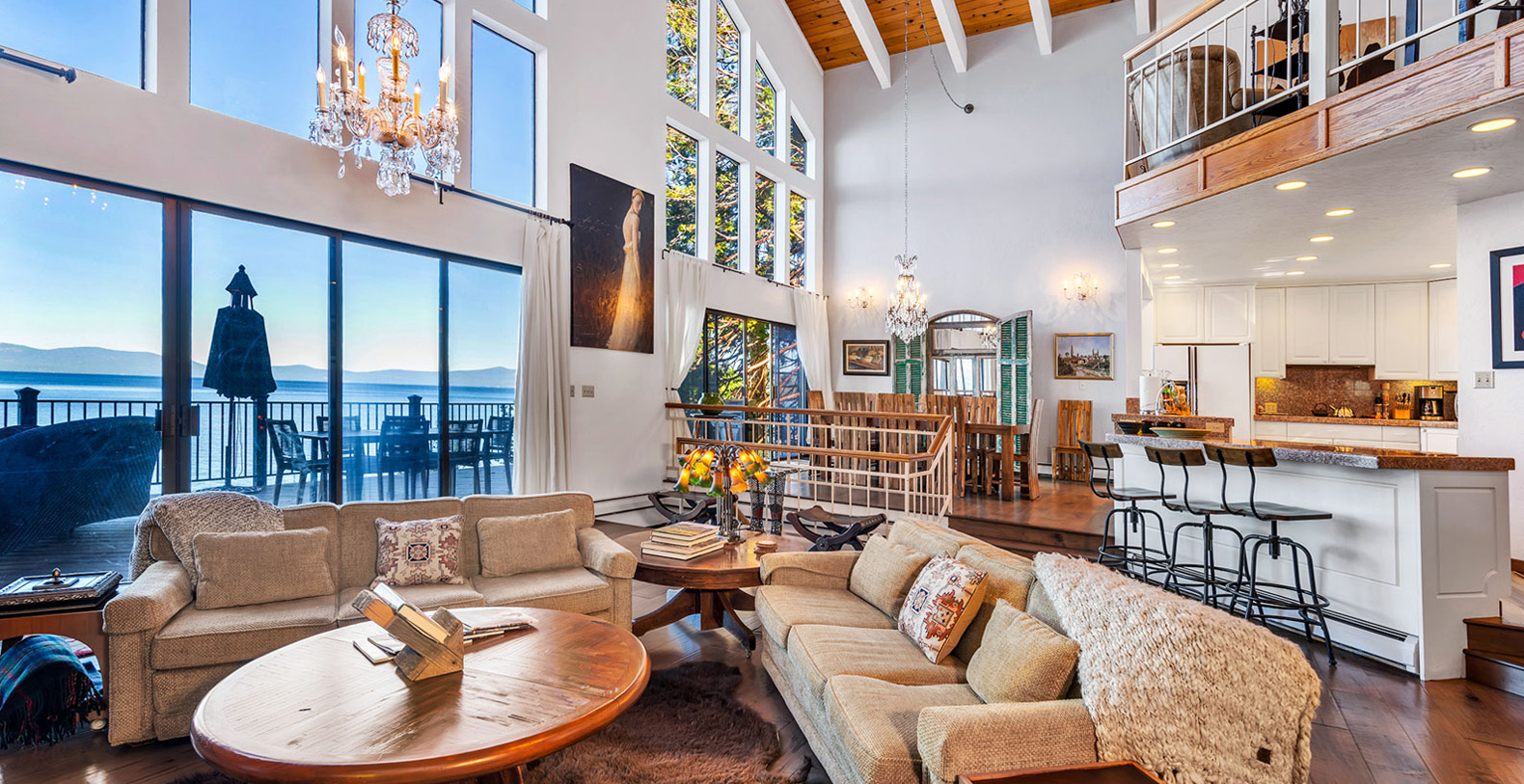 De Lago, brings the outside in with expansive windows that reach from floor to ceiling and doors that sweep open to bring the lakes vistas in uninterrupted to our second living and dining area on the deck above the always playful waters of Lake Tahoe.