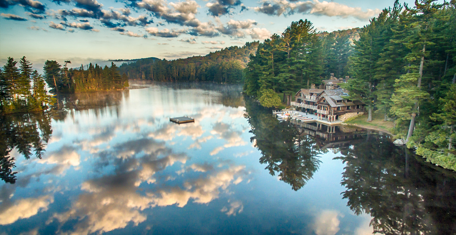 Located in the pristine Adirondack Blue Lake Mountains of Upstate New York, the estate is 1.5 hours from Adirondack Regional Airport in Lake Saranac, 2.5 hours from Albany or Syracuse, 5.5 hours from Boston or New York City. Guests may also chose to arrive directly on property by seaplane or helicopter.