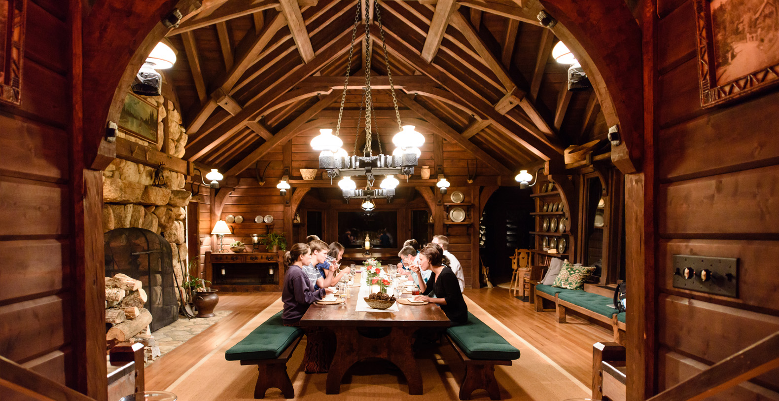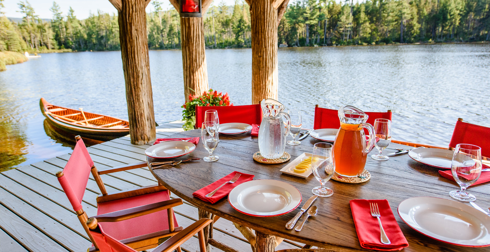 Our resident chef will customize all meals in advance of arrival and serves farm-to-table menus to take advantage of local farmers markets, neighboring farms, etc. Meals are prepared by a gourmet chef and culinary team using locally sourced ingredients whenever possible. Meals are totally customized to your desire and various dining options. With togetherness as one of the most beloved advantages of a visit to Lake Kora, meals are served family style, most often at the long table in the main dining room. A number of different locations are available, however, the deck of the boathouse is a favorite spot for lunch; you might have cocktails on the lawn or a casual dinner in the Playhouse or in the island cottage. For an additional fee, wine, beer and spirits can be selected from our curated list or we can order from our local vendor. Guests also have the luxury of providing their own libations, wherein a corkage charge would be applied. Should the evening turn chilly, a bonfire – along with all of the fixings to make old-fashioned s’mores – may await you at the lean-to’s down by the lake.