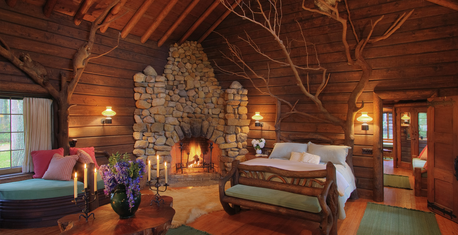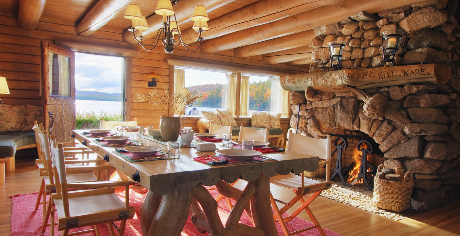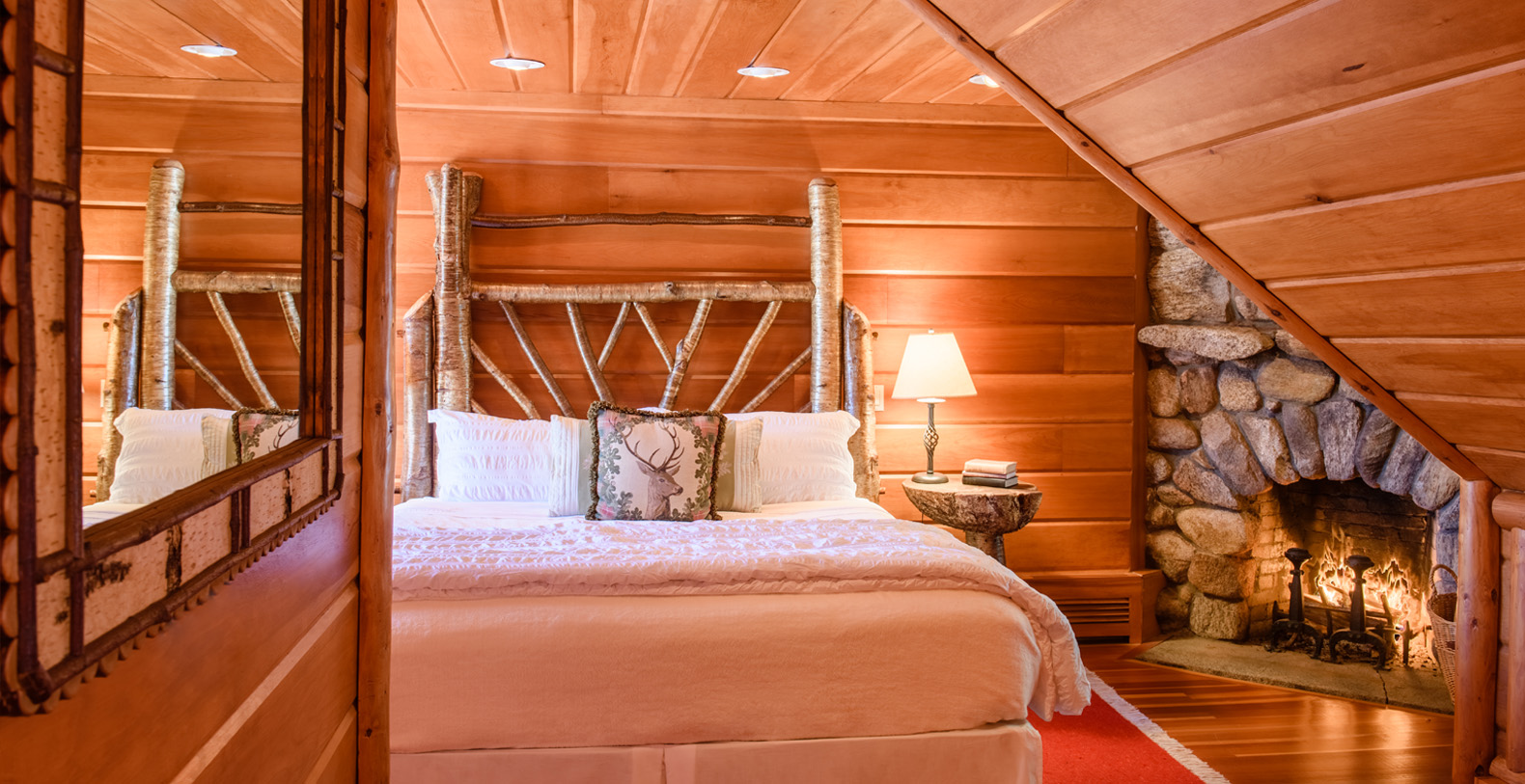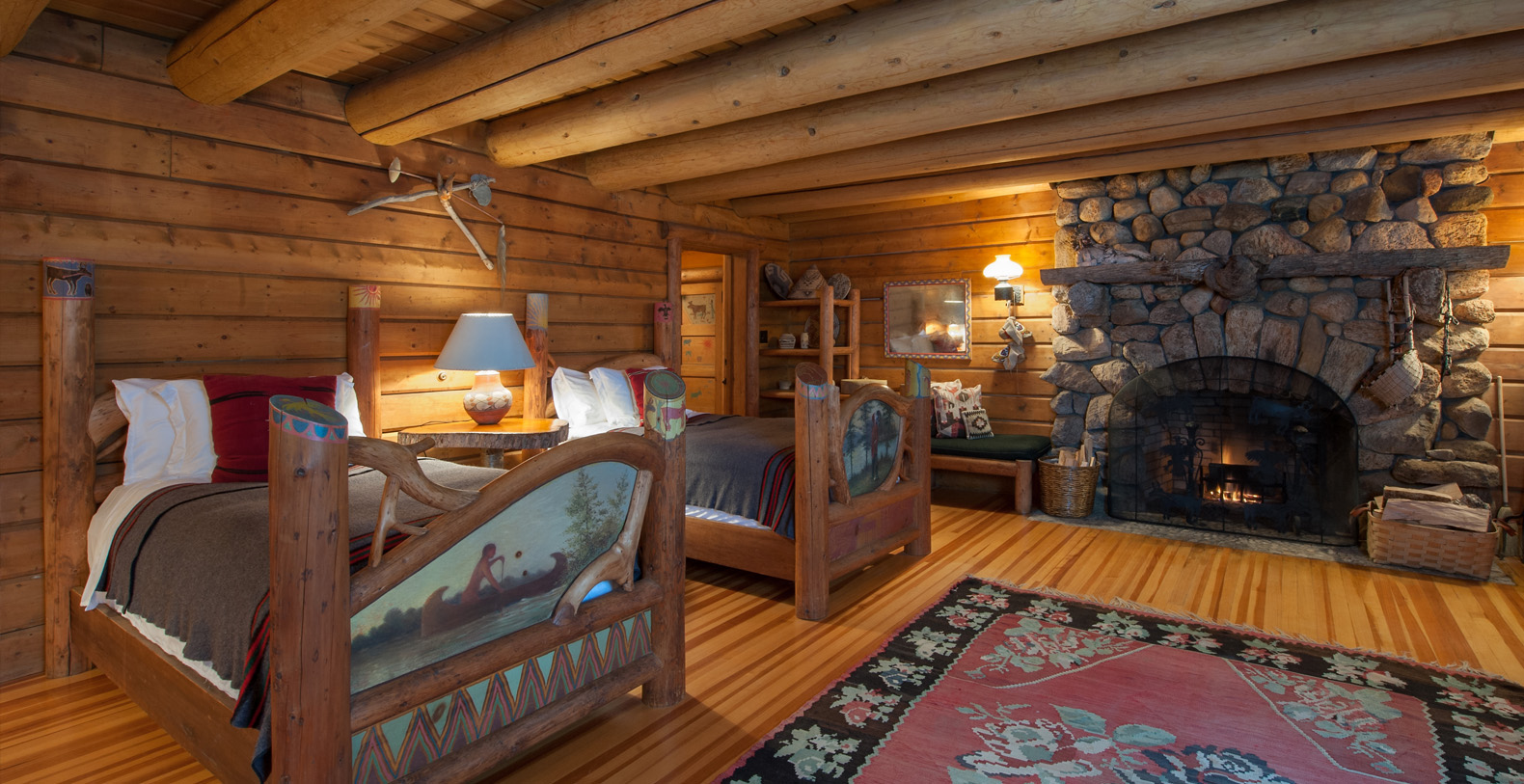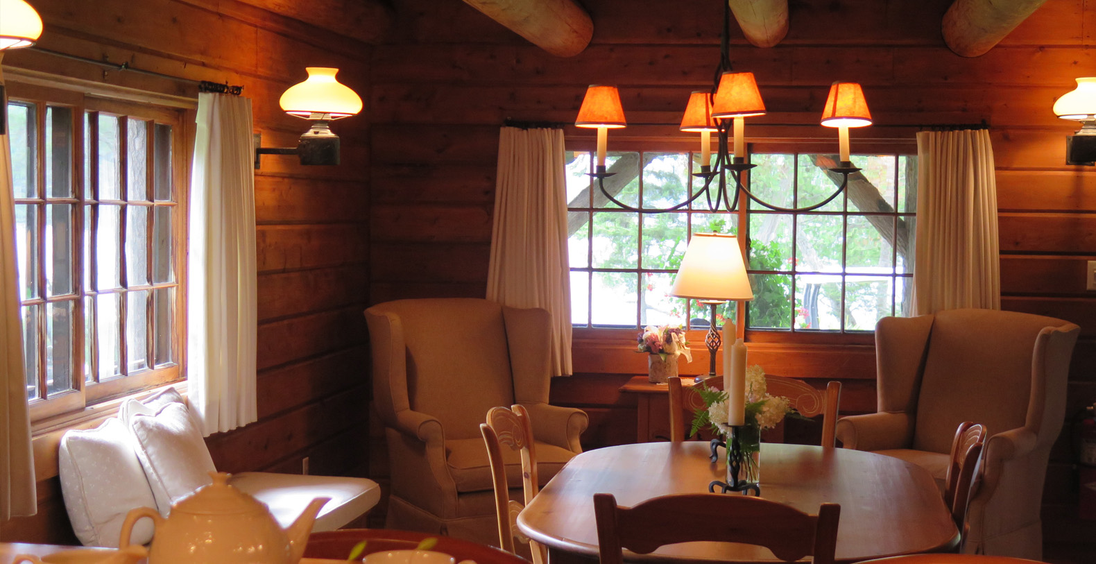 Exquisite guest rooms are spread among log cottages near the lake’s edge. Each is a realm of quiet and comfort, with original furnishings and fixtures made by Lake Kora craftsmen a century ago. Soft white linens and featherbeds, stone hearths laid with fire, elegant wood-walled bathrooms with vintage soaking tubs encourage long, dreamy repose.