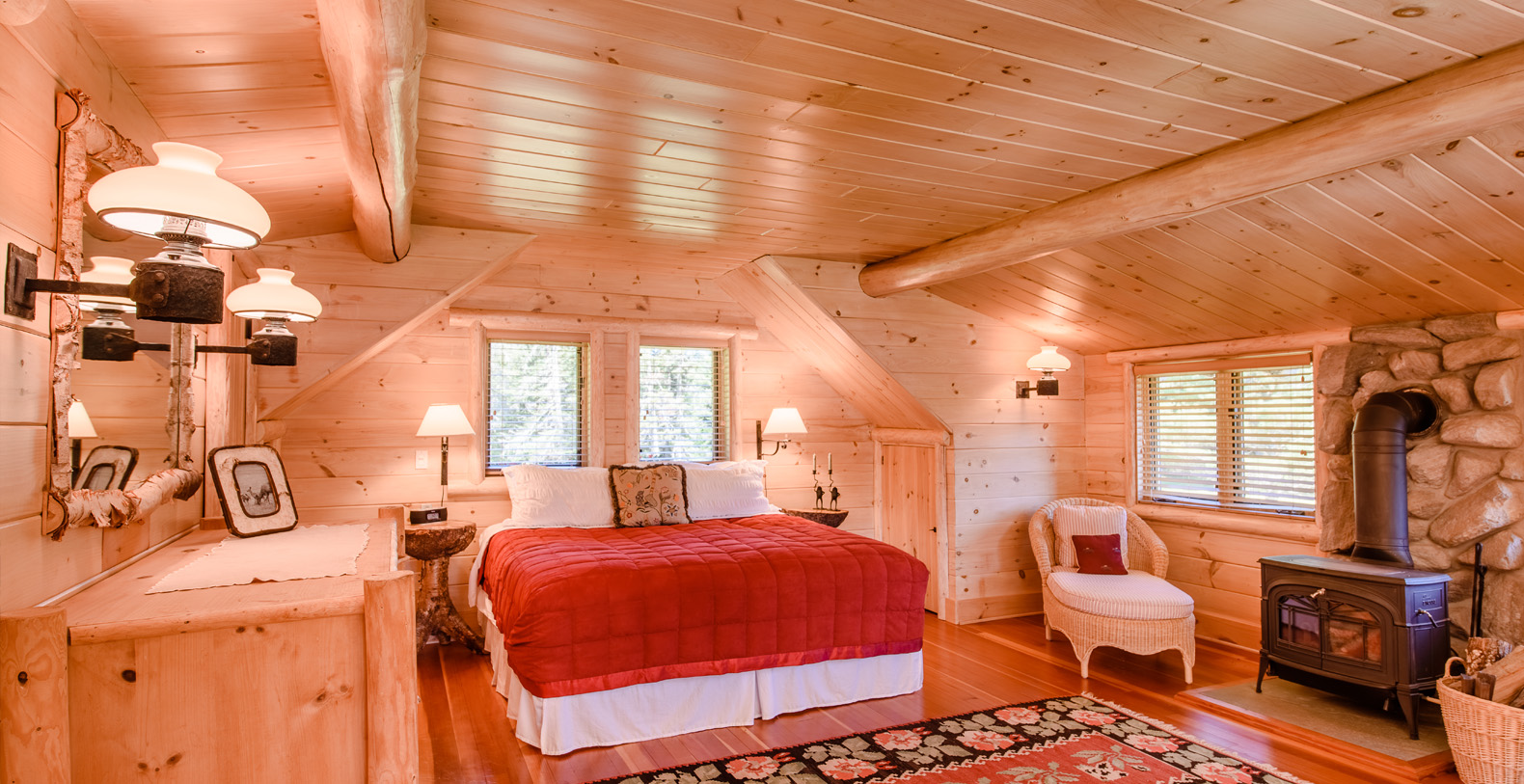 Cozy and country-chic, the individual cottages share a rustic, log-cabin mien. Each cottage has an upstairs bedroom with a king bed, one with 2 twin beds, shared bathroom and downstairs kitchen, living and dining rooms and additional bathroom