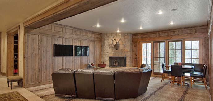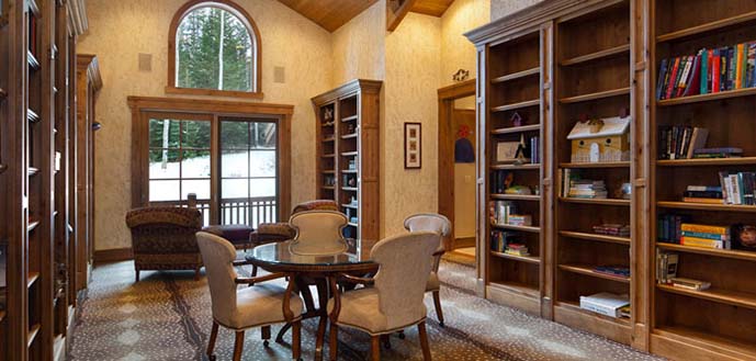 Nestled on the intermediate Sanctuary Run at Canyons Resort, this 11,000 square foot alpine vacation home offers backyard access to the slopes for both skiers and snowboarders. Guests enjoy a theater with stadium recliner seating, fitness center, wine cellar, library and multiple lounge spaces. After a day on the slopes, store your gear in the spacious ski locker room and relax in the secluded outdoor hot tub or sauna.