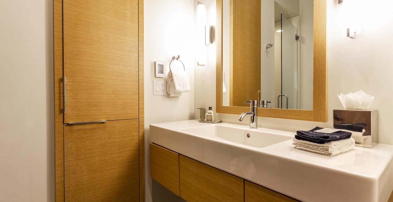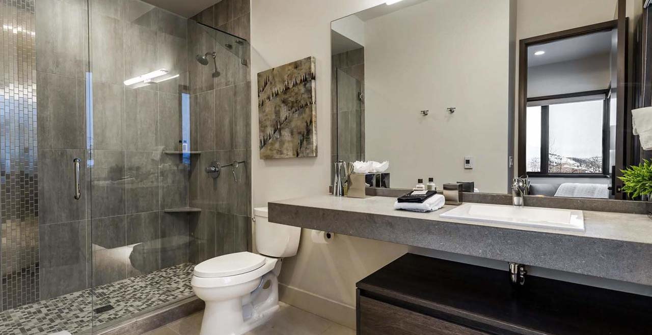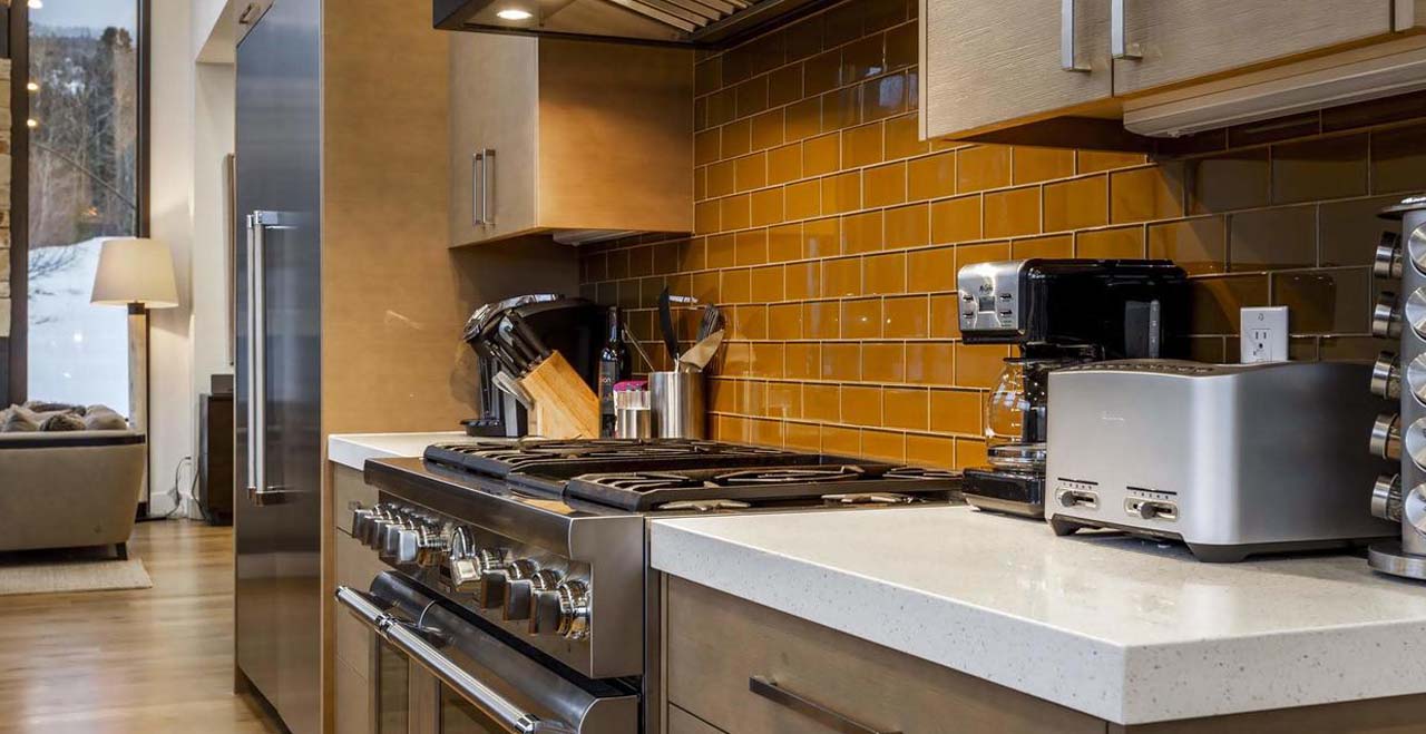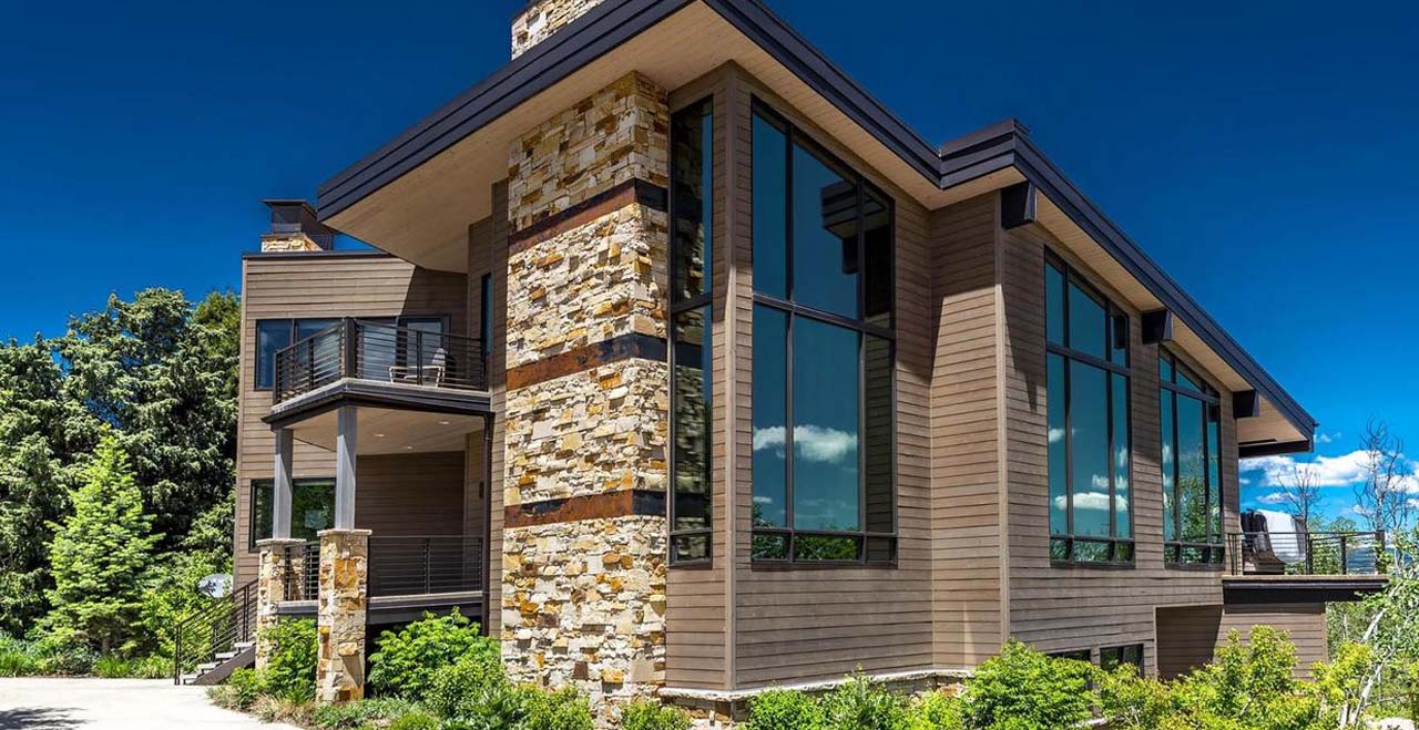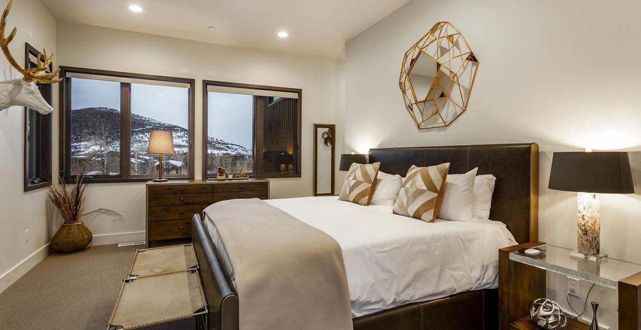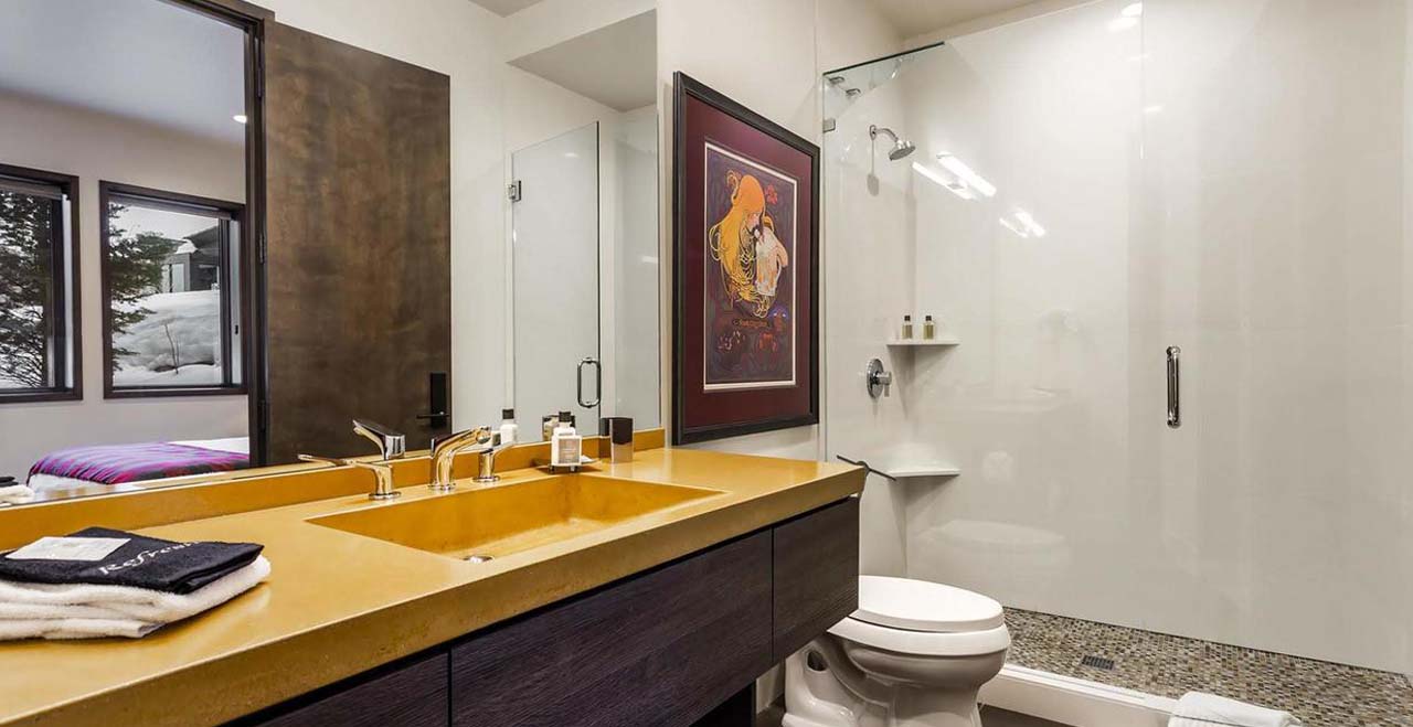 Modern, geometric design produces spacious quarters and living areas. With walls of custom glass surrounding the entire mid-level, the views and atmosphere won't disappoint. The main living area has high ceilings, a stone wall fireplace, an oversized kitchen and floating island equipped with Thermador appliances, boasting modern spacious living. Offering six bedrooms, six bathrooms, and two powder rooms, each bedroom has an attached ensuite and can easily sleep up to 18 people.