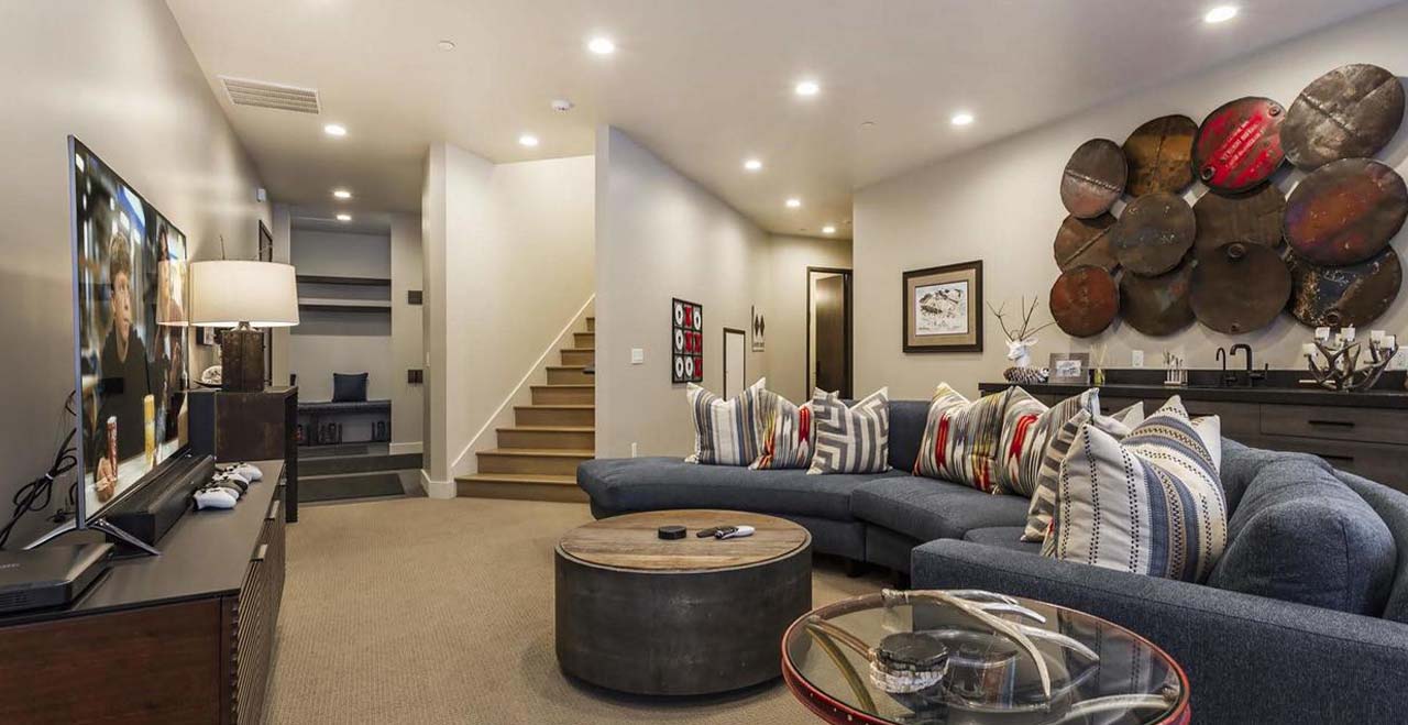 The Master Suite offers a fireplace, a double vanity en suite and stunning views of the mountain. Each bedroom offers open, contemporary design, providing a sense of space and warmth. The lower basement level offers an oversized bunk room and Jack and Jill bathroom. Adjacent to the bunk room is a family room featuring a wet bar and games, perfect for the kids. Generous decks surround the home, with extensive entertainment value.