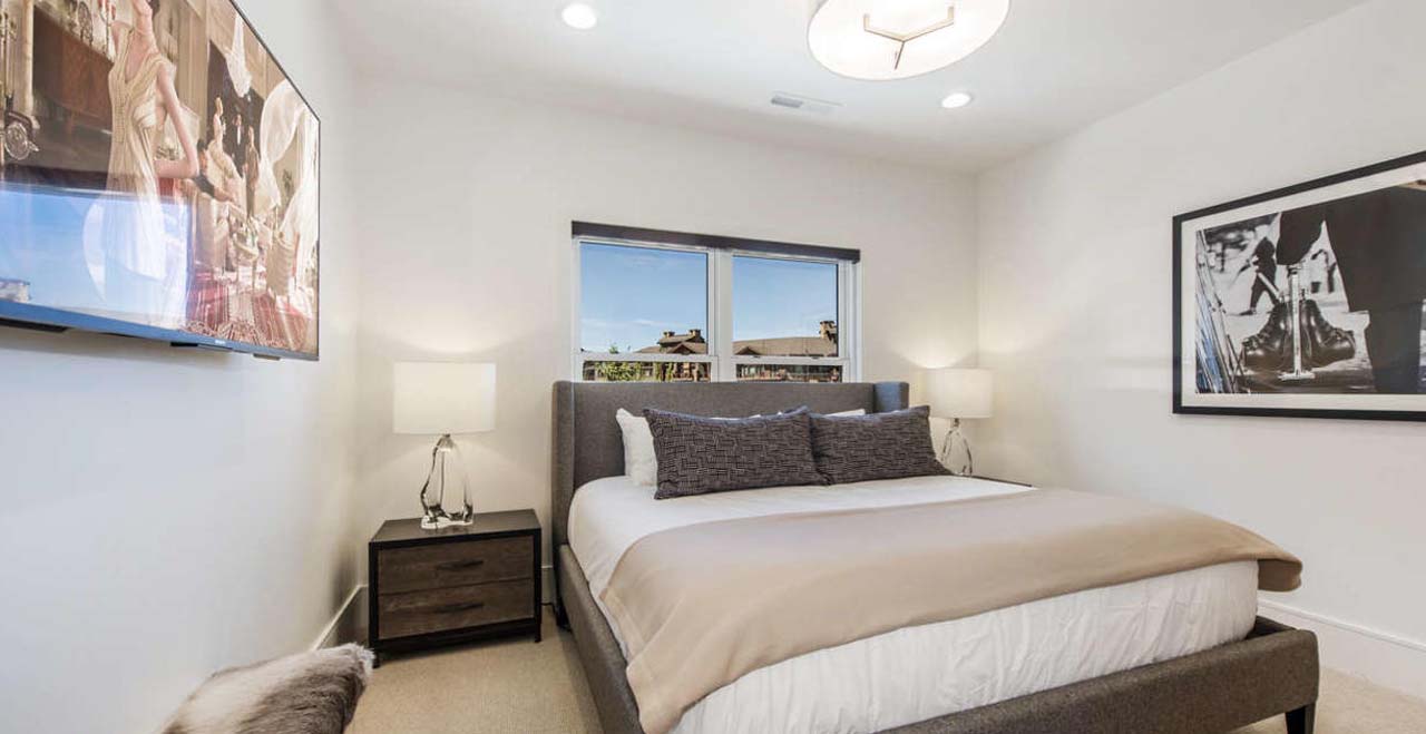This space can comfortably sleep up to 6 guests, in two sets of twin-over-queen bunk beds, and shares a bath just across the hall. Frostwood Gondola Retreat has plenty to entertain a large group. The lower level media and games room is equipped with a lounging area that features a flat-screen TV, a wet bar and ping pong table. Back on the main level is a separate covered BBQ and private hot tub area. All these amenities are in addition to the phenomenal location of this home. During the winter months, you can hop on the Frostwood Gondola for a day out on the slopes and in the summer tee-up in your backyard at the exclusive Canyons Golf Course. Every detail of this mountain contemporary home has been curated to offer a polished and seasonal haven for the year-round traveler.