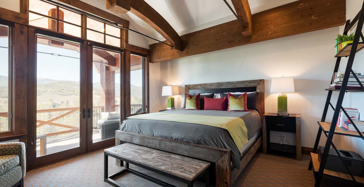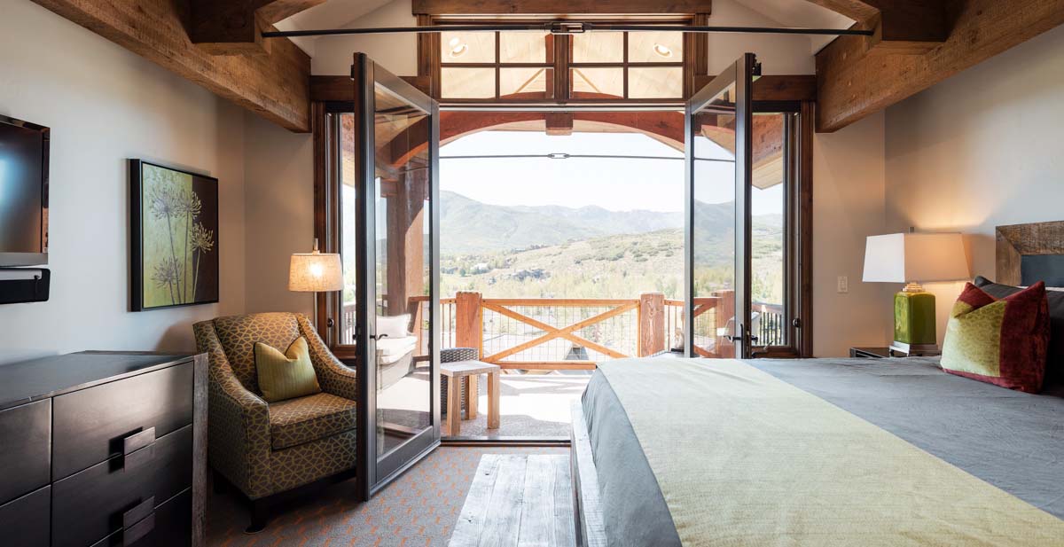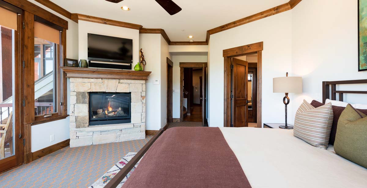 A private balcony off the great room overlooks the mountains, while a separate deck off the back of the home provides a quiet outdoor dining area with a BBQ grill.