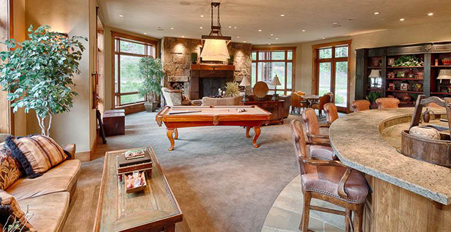 Amenities: Inviting outdoor fire pit, heated patios, projector screen stadium-seat theater room, pool table, private indoor hot tub, sauna and eucalyptus steam room, game room, commercial elevators, two apres ski bars, temperature-controlled wine cellar, gourmet kitchen and separate caterers' kitchen.