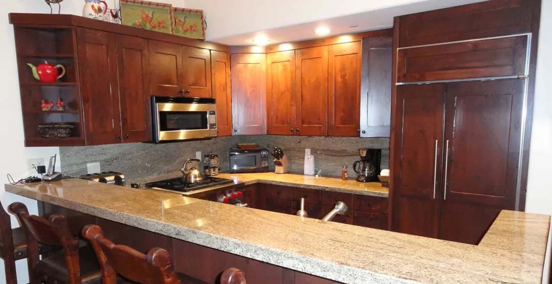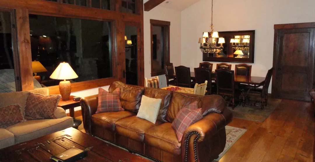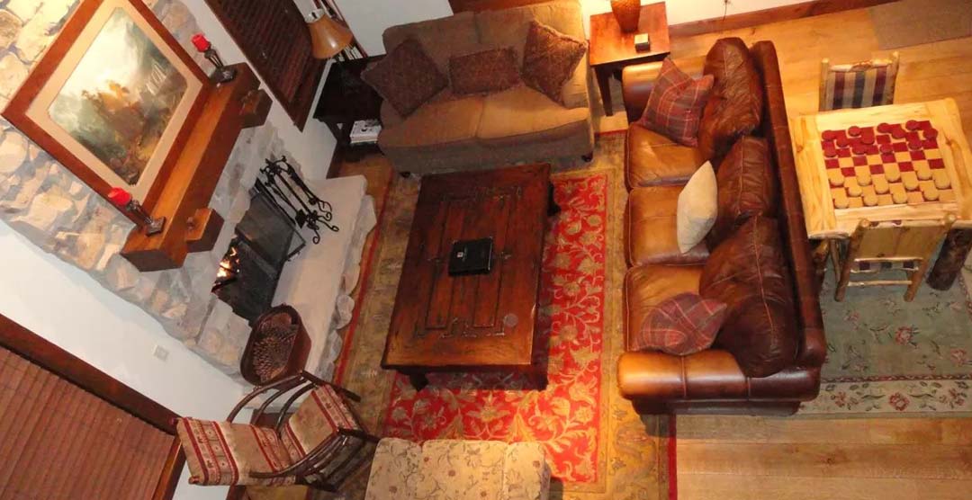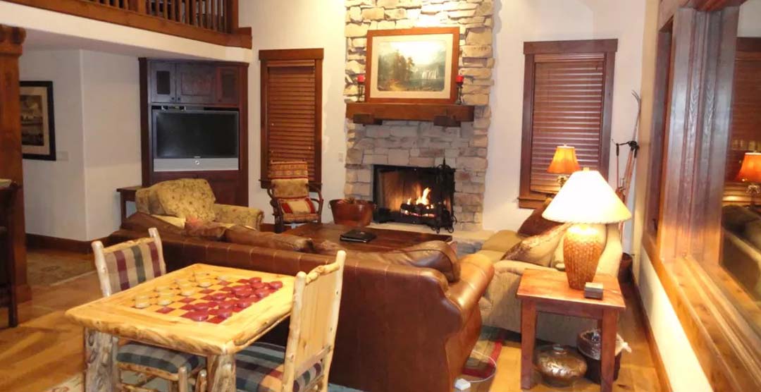 Designed for maximum luxury and comfort, the large, open great room includes vaulted and beamed ceilings, and a huge wall of windows to take full advantage of the wonderful big-valley views. Exquisitely decorated, the living area, dining area and upscale kitchen include a marble stone bar, stainless appliances and NO WALLS to obstruct your views. Relax in front of the large stone fireplace or take in the big games on the widescreen 50-inch Sony HDTV.