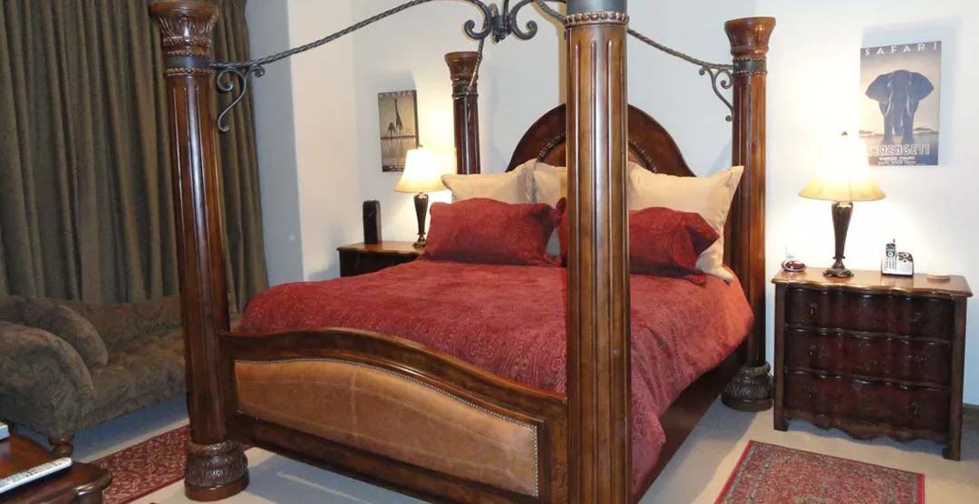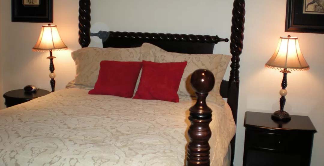 Luxuriate in the vaulted-ceiling main-level master bedroom suite with its grand 4-poster bed, and adjoining private bath with a jetted tub plus a large, walk-in shower.
