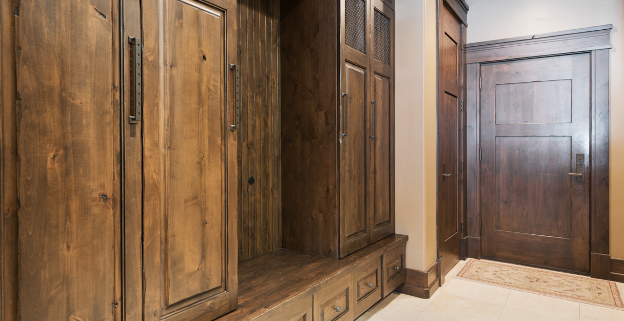 Ski Prep Area With Custom Hardwood Ski Lockers