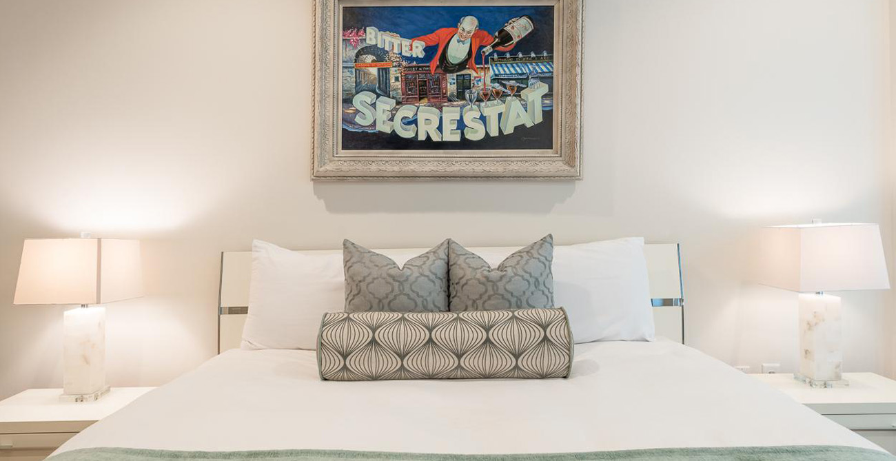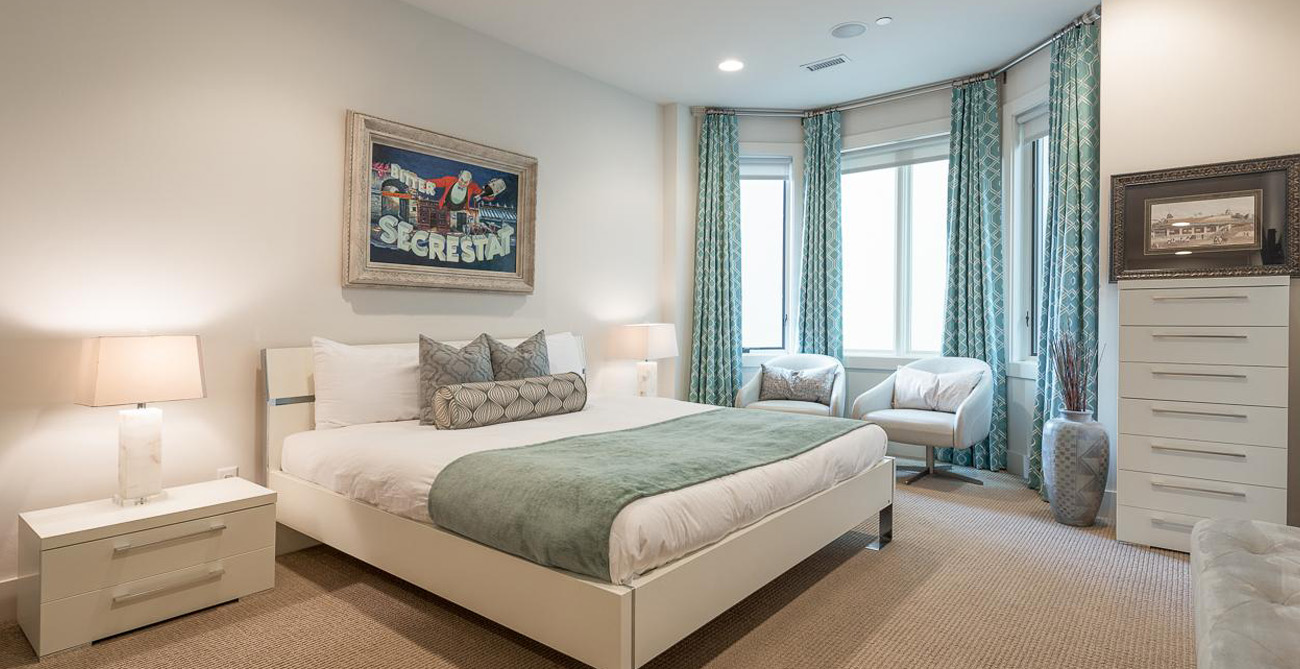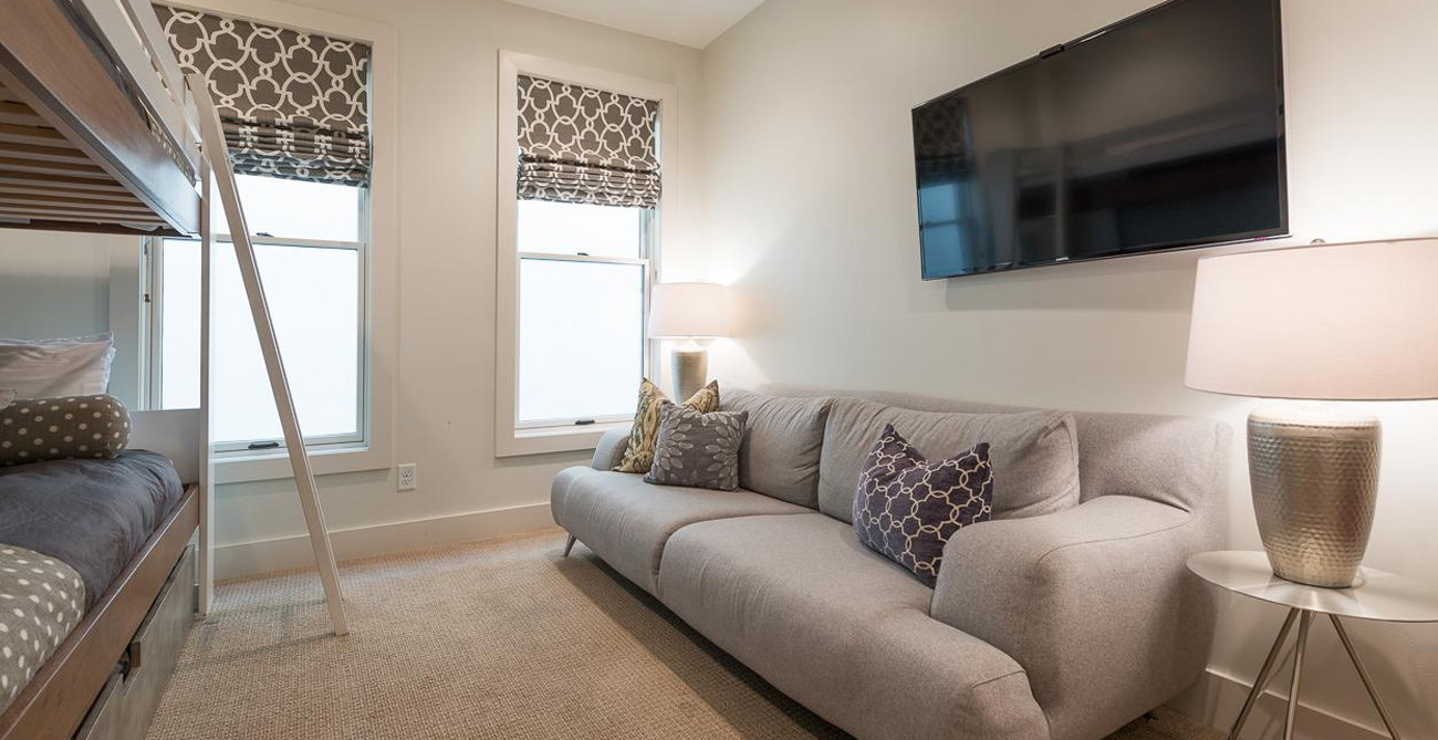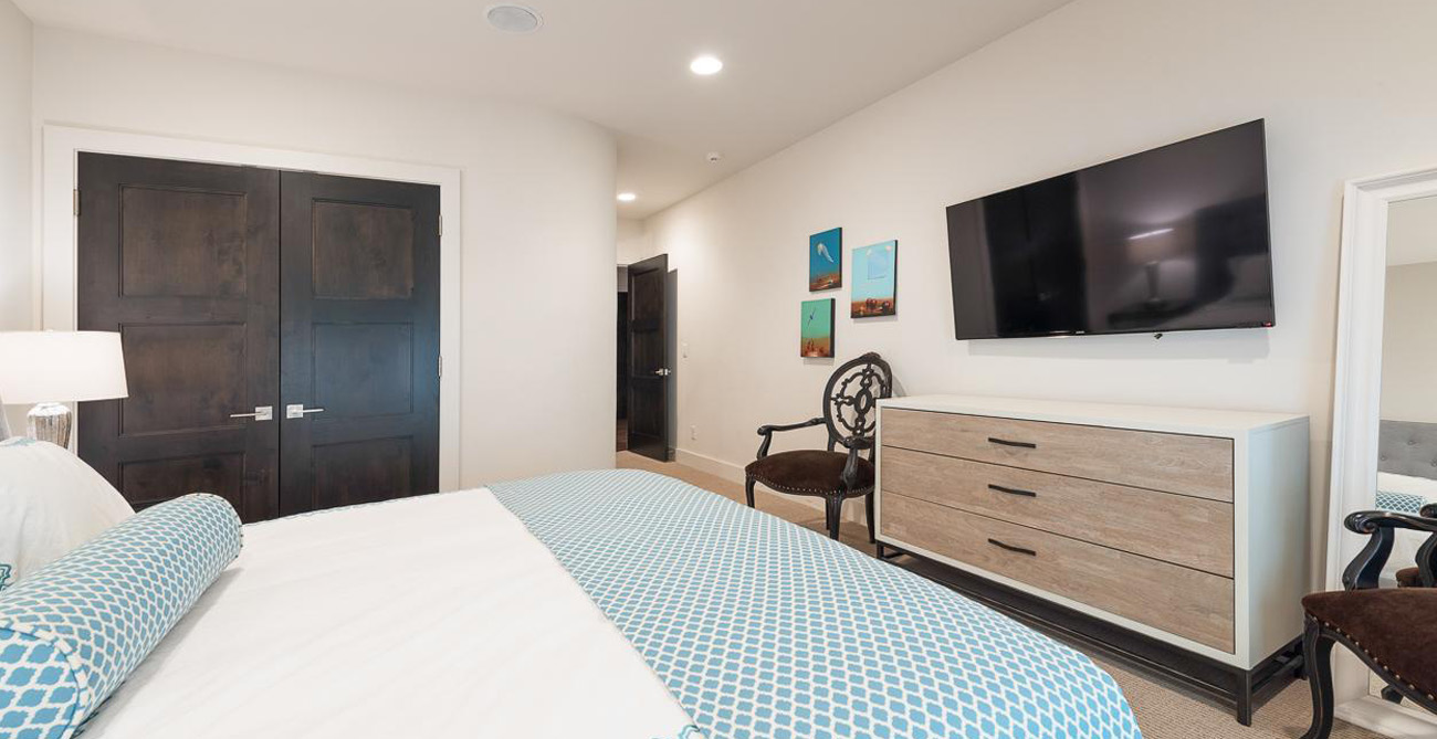 Expect a goodnight’s rest for all in one of the four bedrooms, which are thoughtfully located for privacy, each with its own adjacent bathroom. The master bedroom has a king bed, private balcony, gas fireplace, flat screen TV, walk-in closet and en suite bathroom. The guest master also has a king bed, walk-in closet, flat screen TV and en suite bathroom. The third bedroom has queen bed, flat screen TV and en suite bathroom. The fourth guest room is a modish bunk room with a trundle, flat screen TV and bathroom it shares with the cinema room.