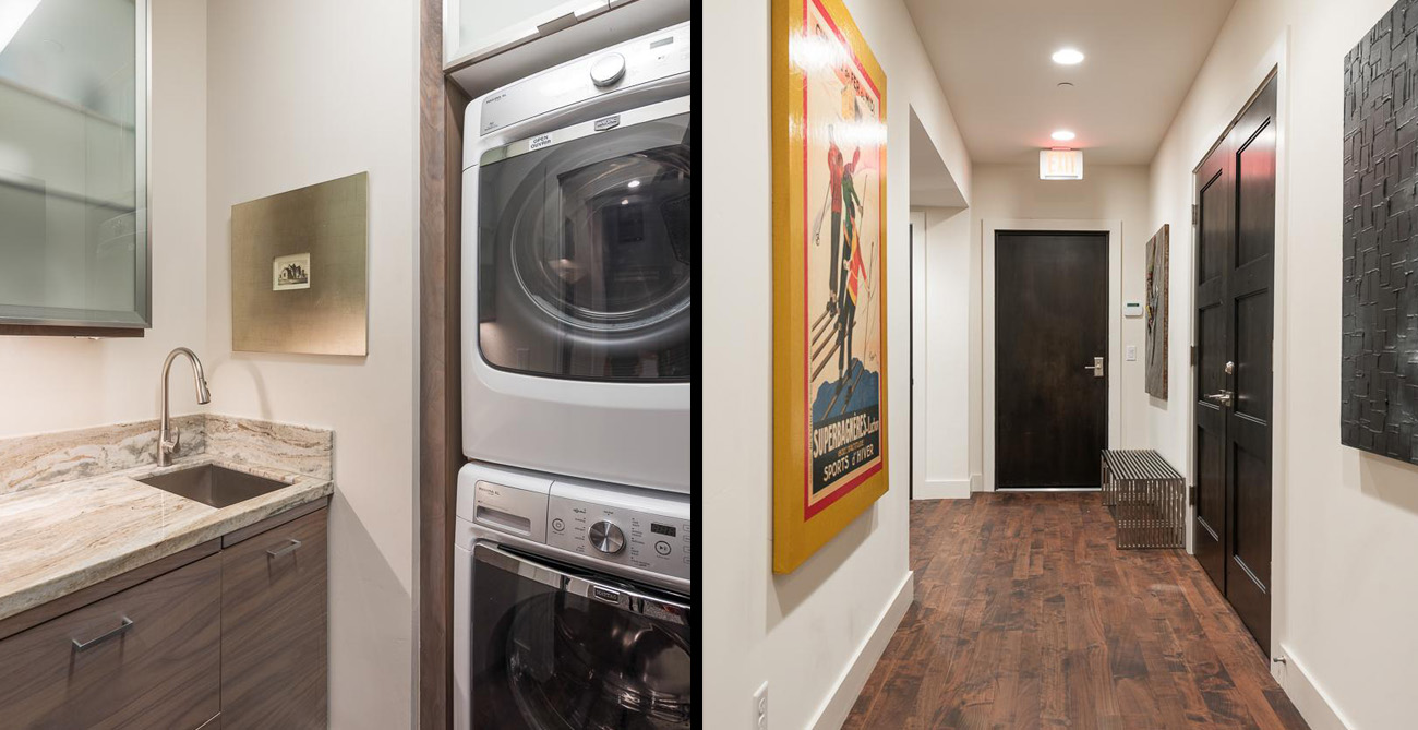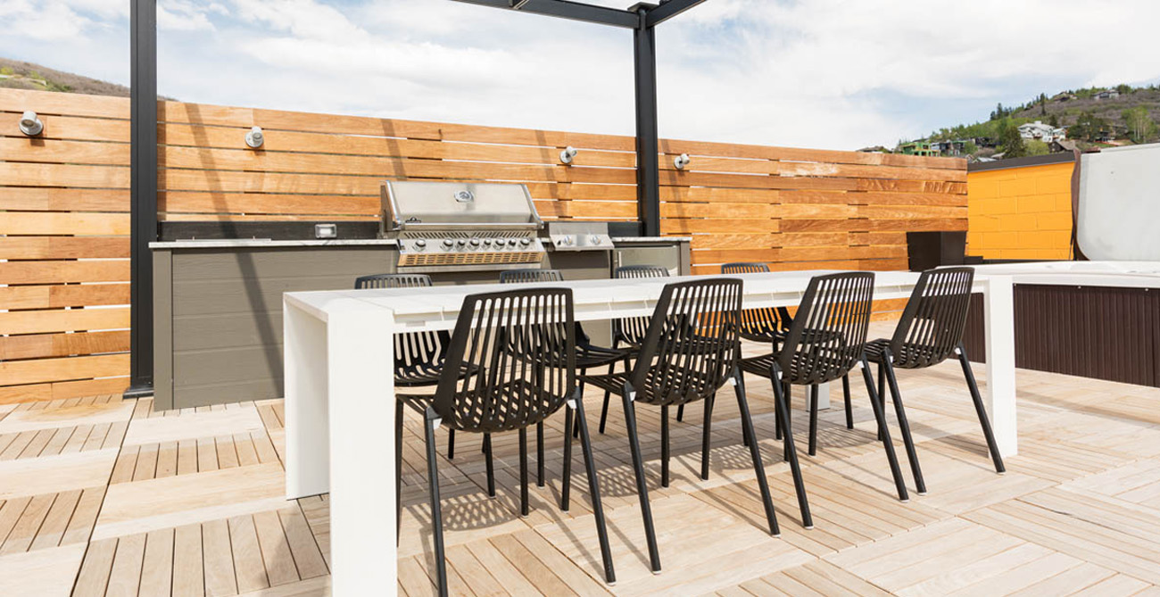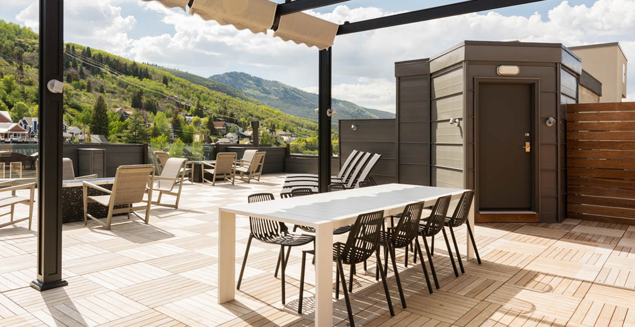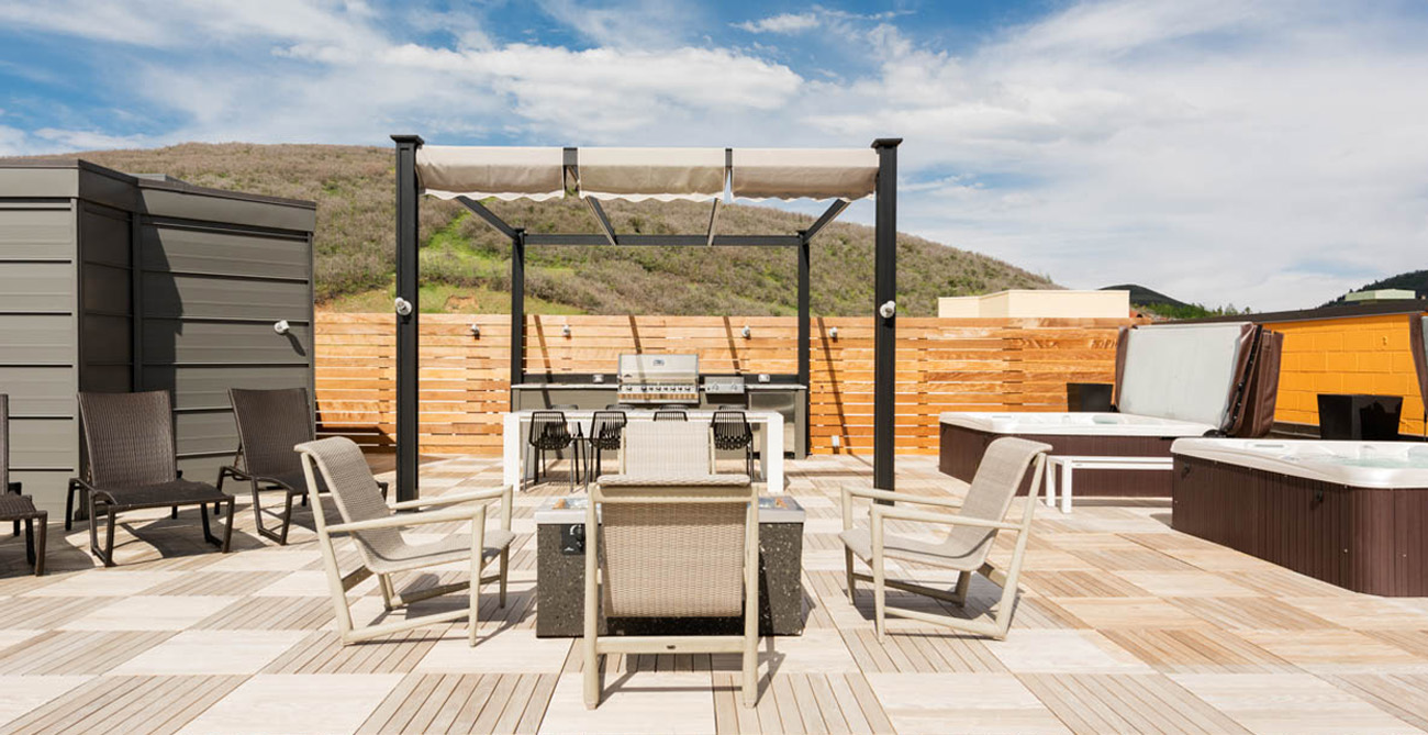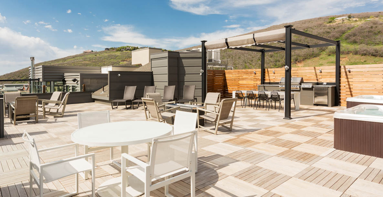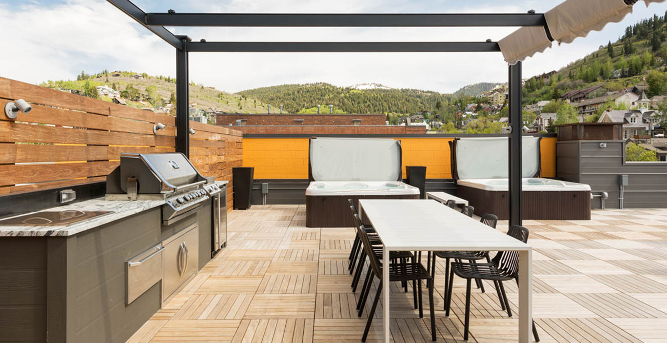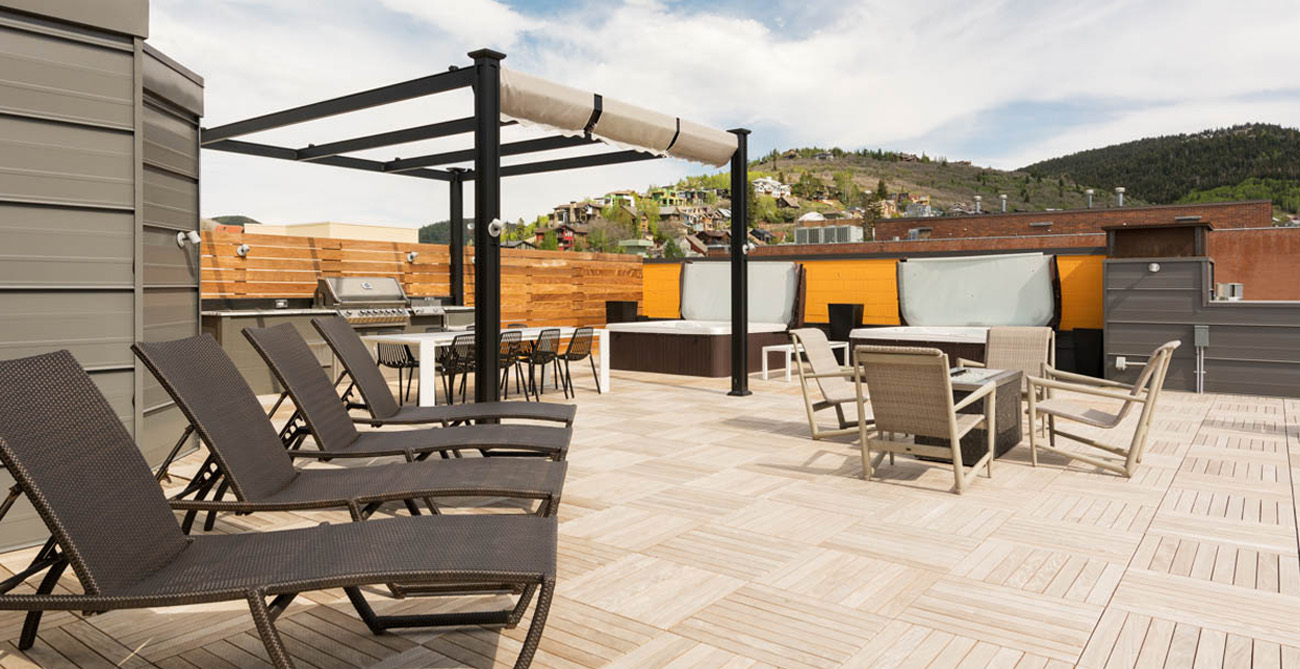 The stylish home theatre is the perfect place to watch movies with convertible leather seating for up to 8 people that also converts into a queen size sleeper sofa. Overlooking Main Street, the shared penthouse rooftop deck is an incredible space to entertain or take in the best of Park City. The views and people watching are some of the best in town. Everything has been considered—hot tubs, a gourmet gas barbecue, food prep areas, elevated fire pits and plenty of attractive and comfortable lounge furniture. Guests also have one parking spot available to them at the nearby Diamond Parking Lot on 7th Street.