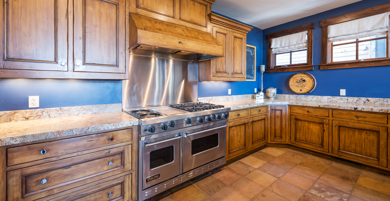 There is a private hot tub, gourmet kitchen with top-of-the-line appliances, gas fireplace, washer & dryer, Satellite TV, air conditioning, den with wet bar, and heated 2-car garage