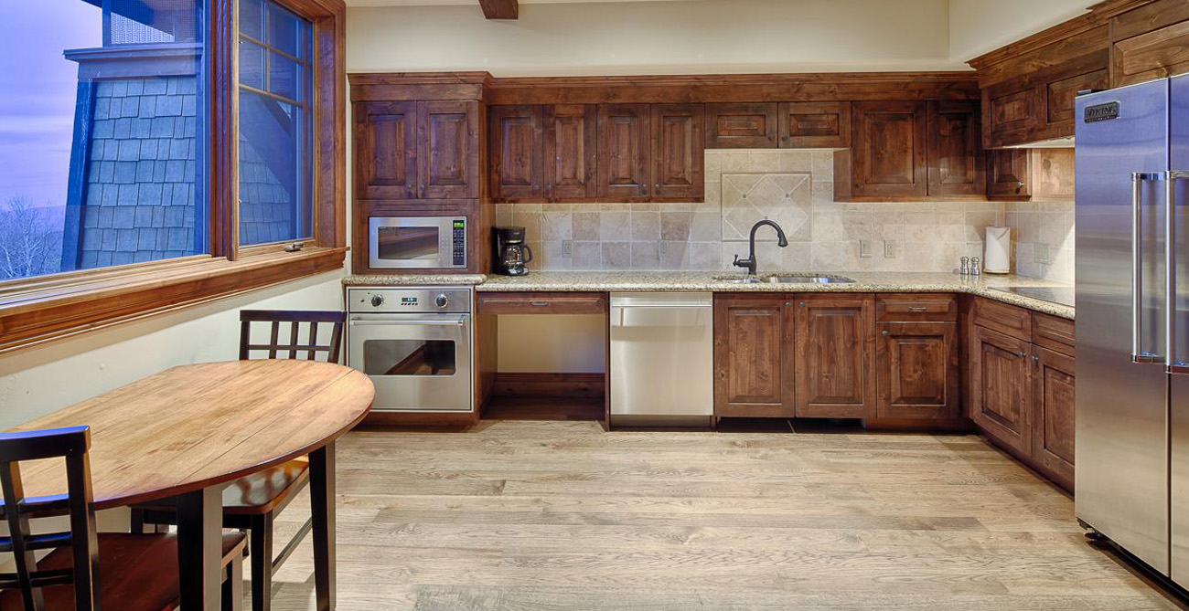 These units come with ski equipment storage lockers, a common over sized outdoor hot tub, state-of-the-art fitness facility, stunning mountain views, top-of-the-line appliances and electronics, stylish mountain décor. Guests also enjoy a private heated underground parking