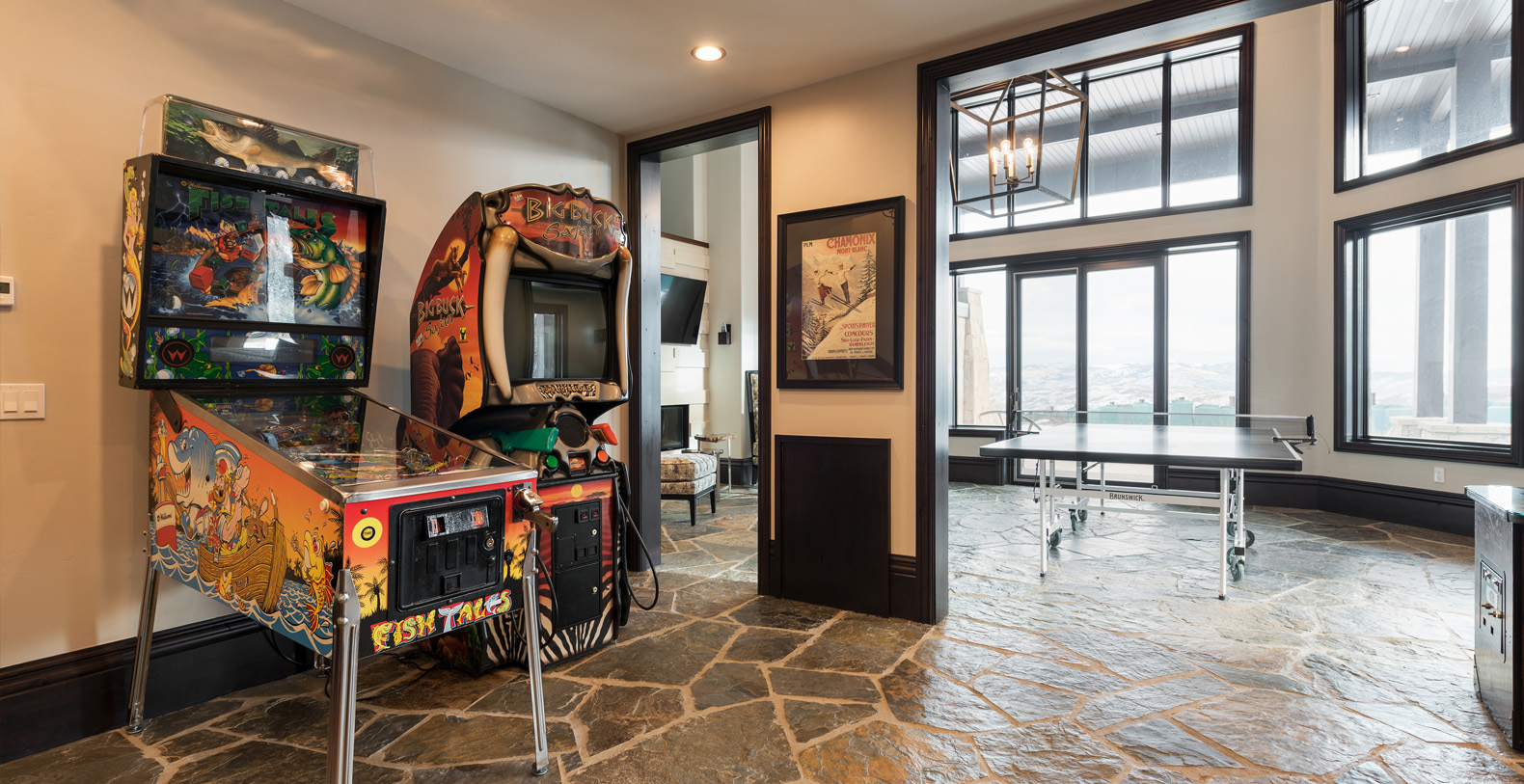 Experience what one of the finest homes has to offer located in the private, gated community of Deer Crest at Deer Valley. With exceptional views, exquisite decor and ample activities this ski villa is perfect for families and large groups or a luxurious couple get away. Make a milkshake and drink a soda at the 50's themed diner then dance along to the jukebox; enjoy a movie in one of the nine love-sac seats or stadium recliners in the theater room; and play a game of billiards, ping-pong or Foosball with gorgeous views in the background. Sky Ridge Retreat will surely refine your ski vacation.