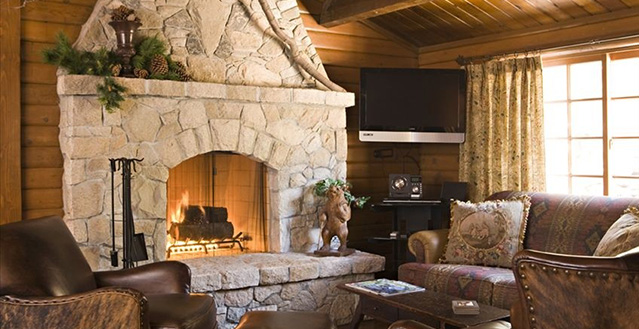 Apartment: (at extra charge). The apartment is located adjacent to a covered parking area, below the Main Lodge with a separate entrance. It is a one-room apartment with a queen bed and a double futon/couch, with a fireplace (gas, not wood burning) and its own a half bath.