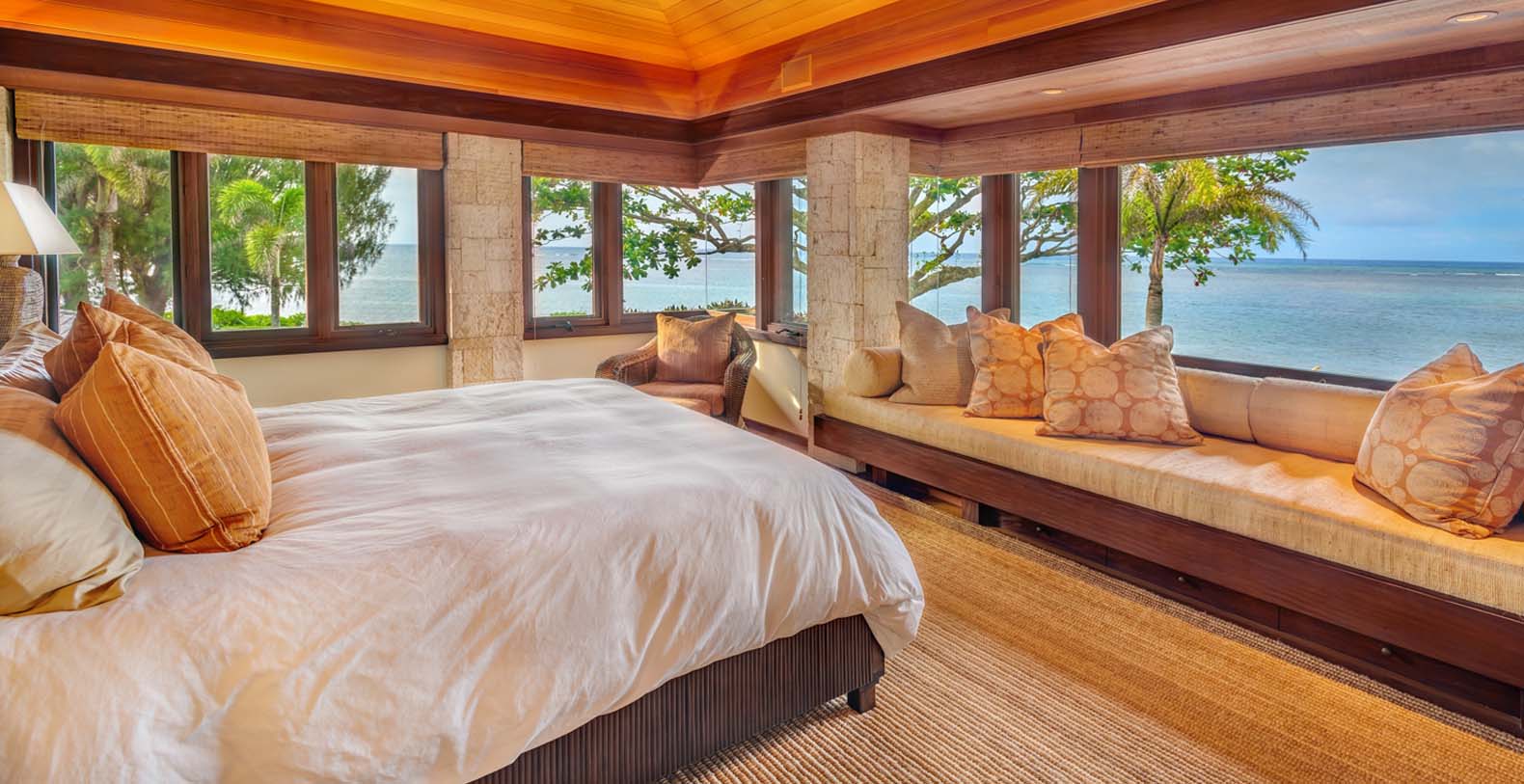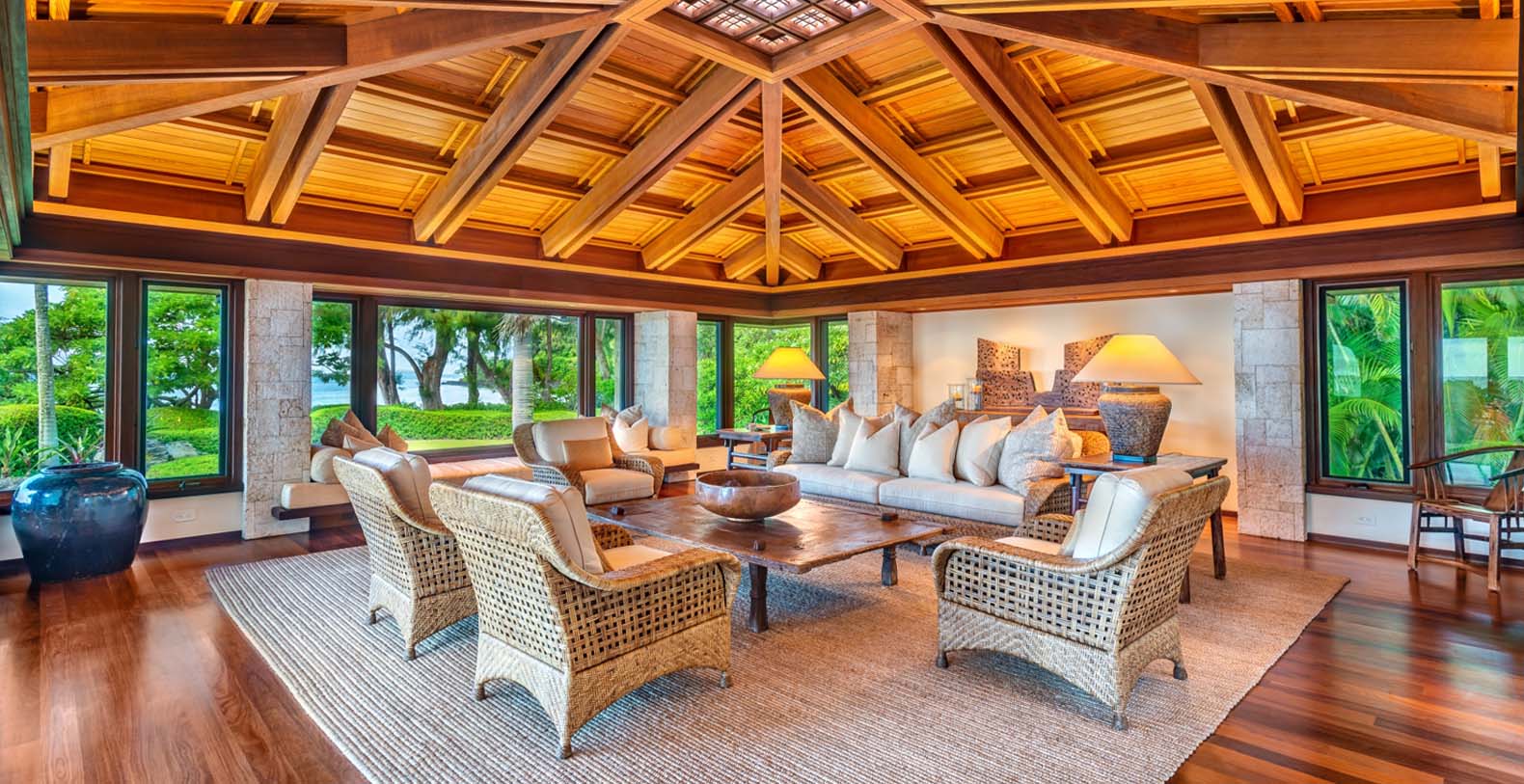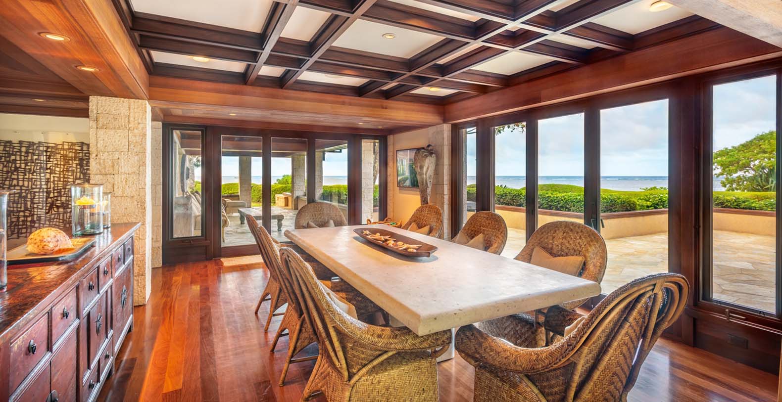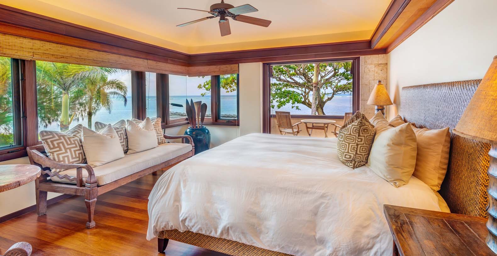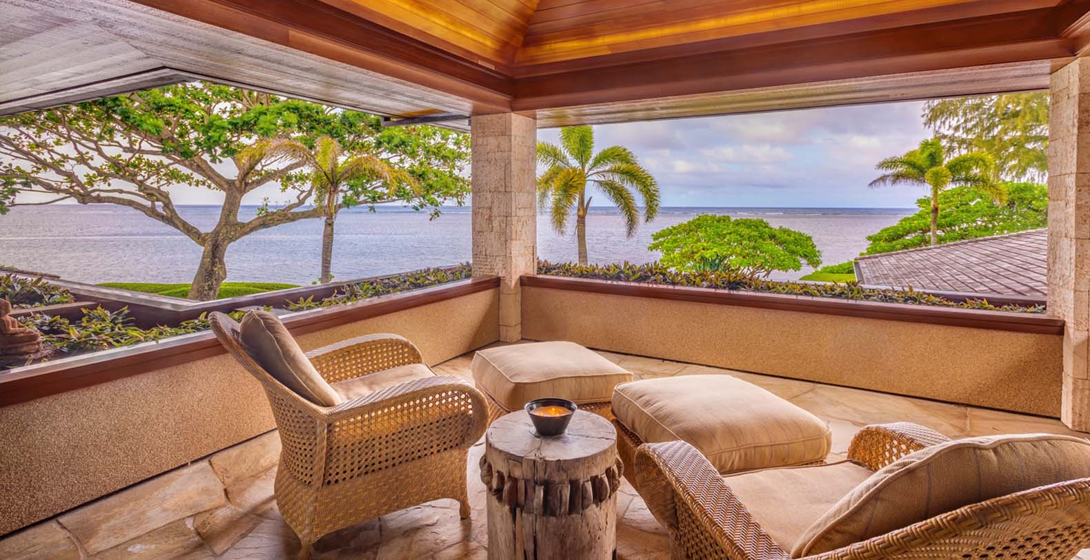 This beautiful beachfront luxury home is situated just steps from the tranquil waters of Anini Beach. It features panoramic ocean views, beautiful landscaping, ample indoor and outdoor living and dining areas, as well as four oceanfront bedrooms.