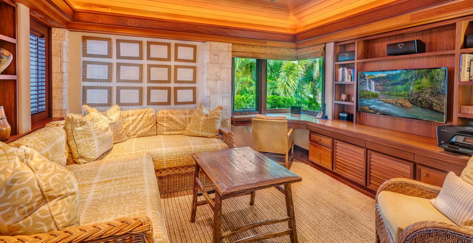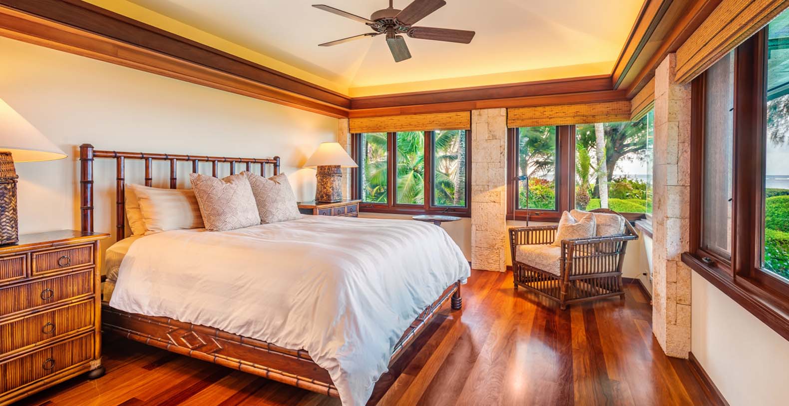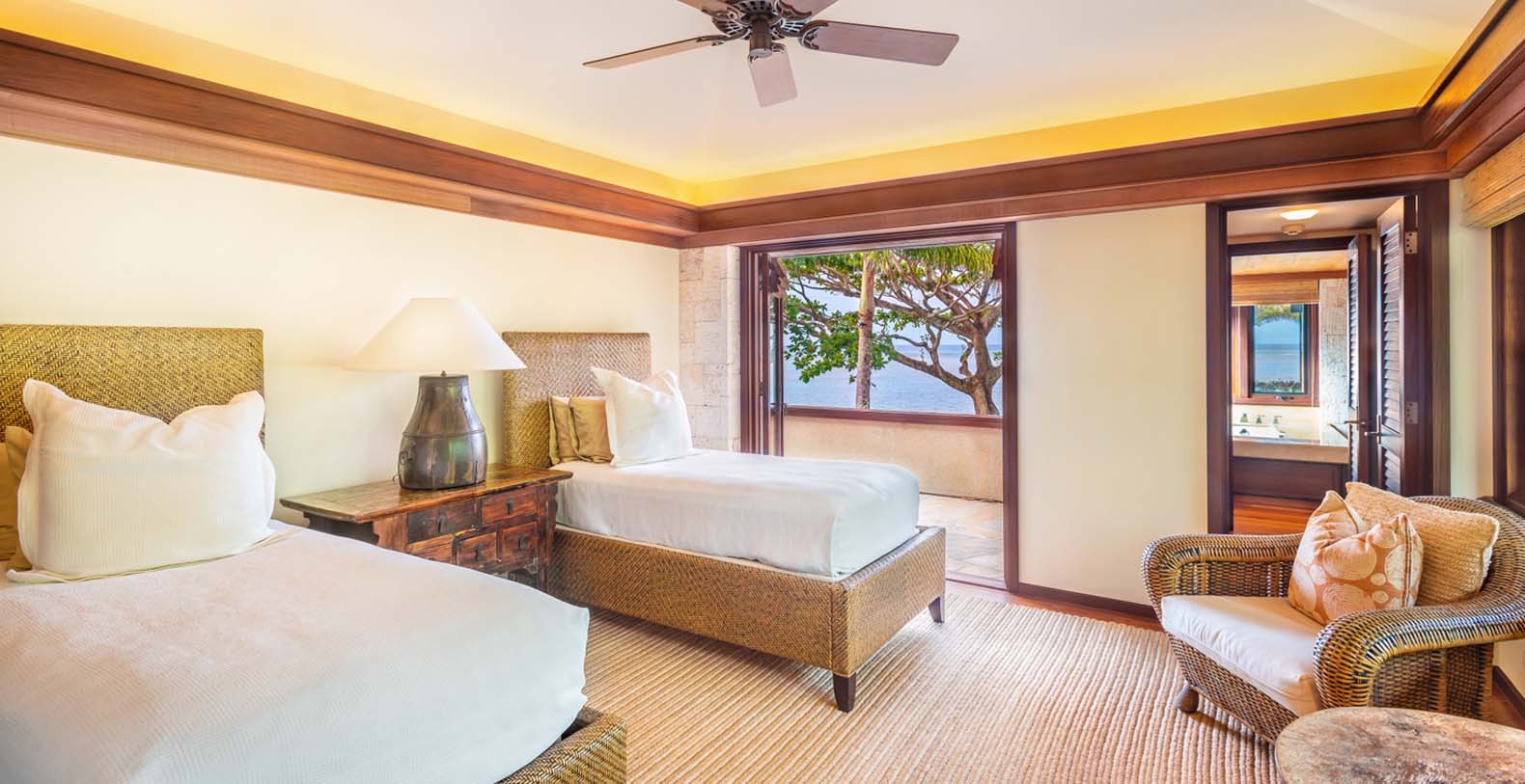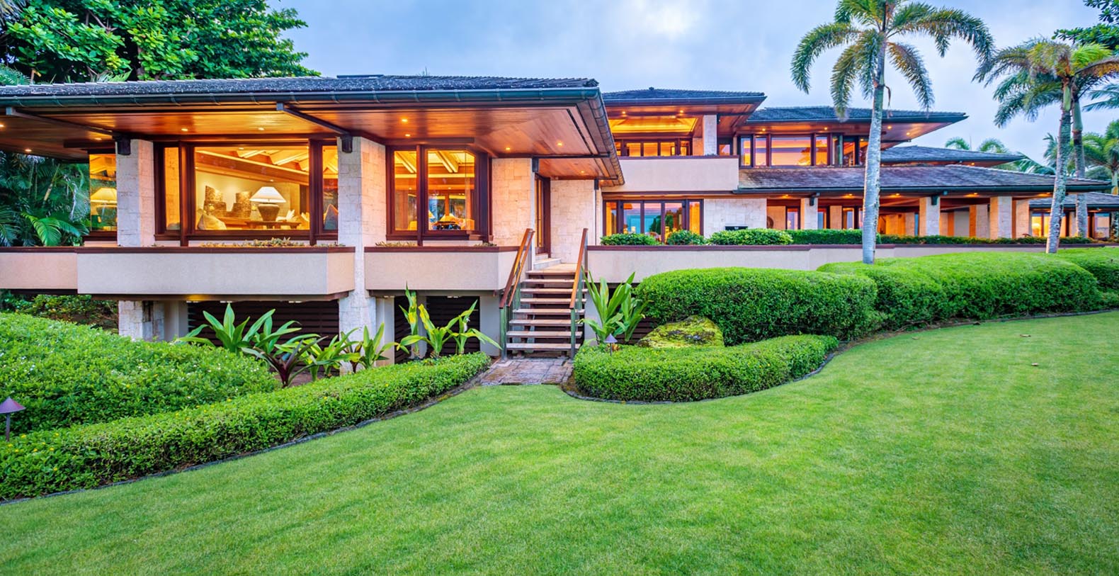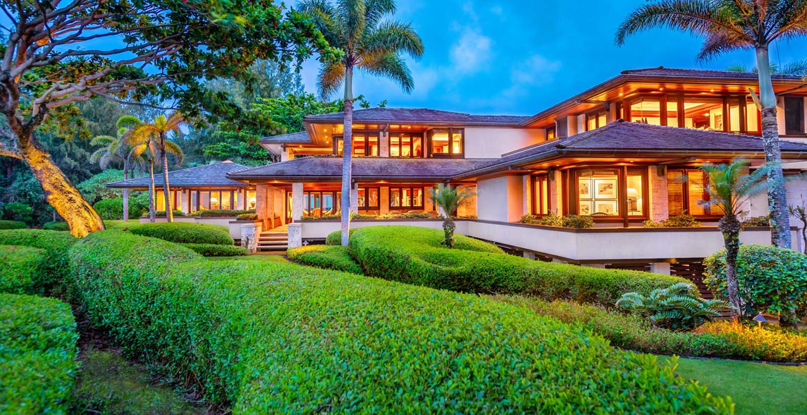 This beautiful beachfront luxury home is situated just steps from the tranquil waters of Anini Beach. It features panoramic ocean views, beautiful landscaping, ample indoor and outdoor living and dining areas, as well as four oceanfront bedrooms.