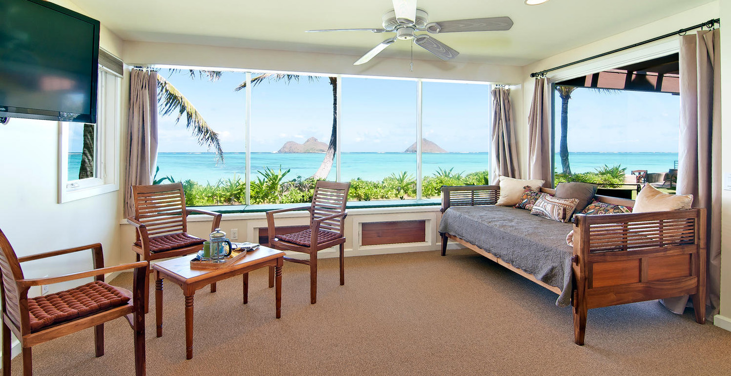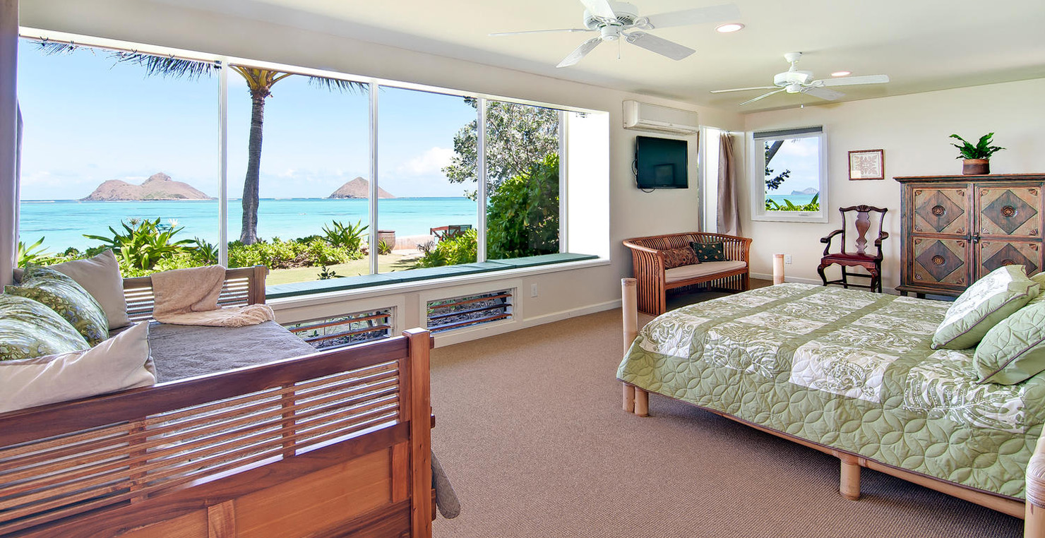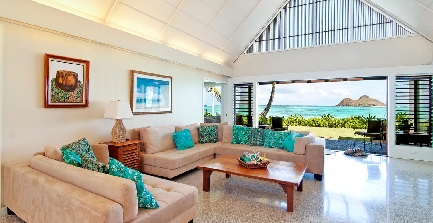 Fall asleep to the sound of the waves, and wake up to breathtaking sunrises! Mokulua Nui overlooks the sparkling blue-green waters of Lanikai beach, and offers a gorgeous view of the Mokulua Islands.