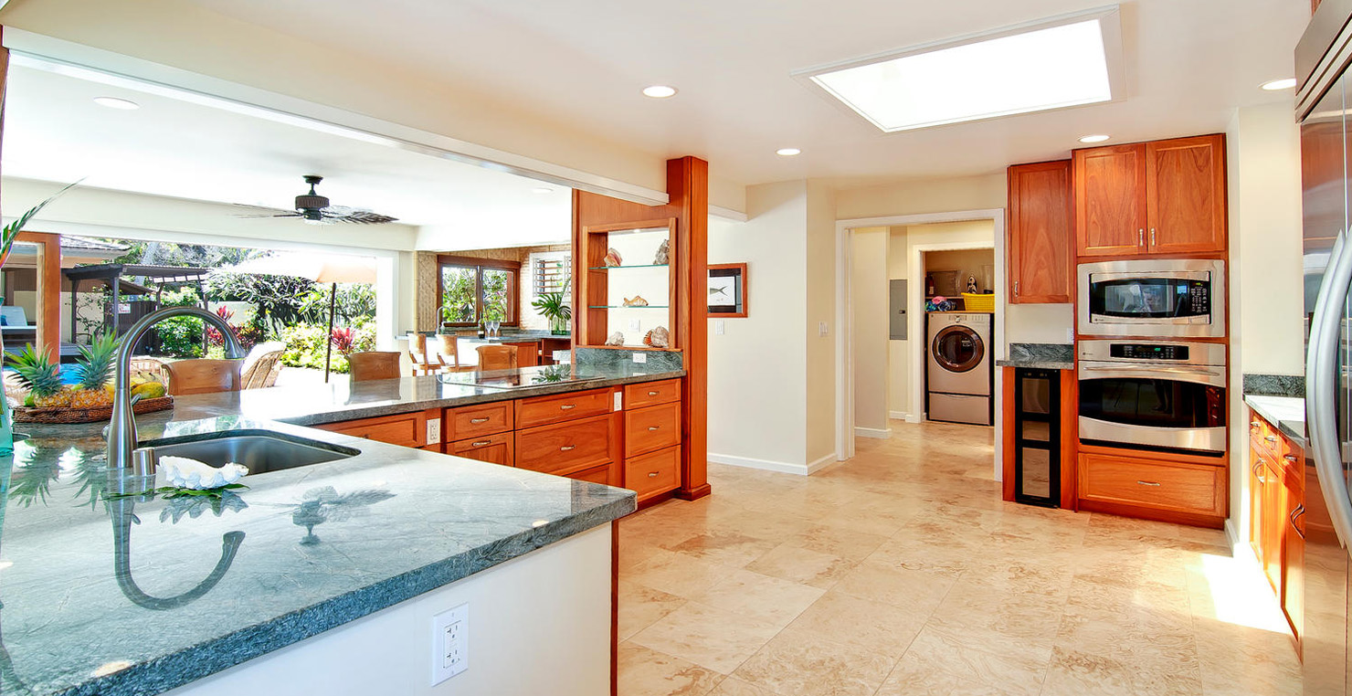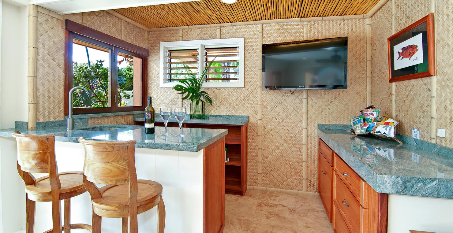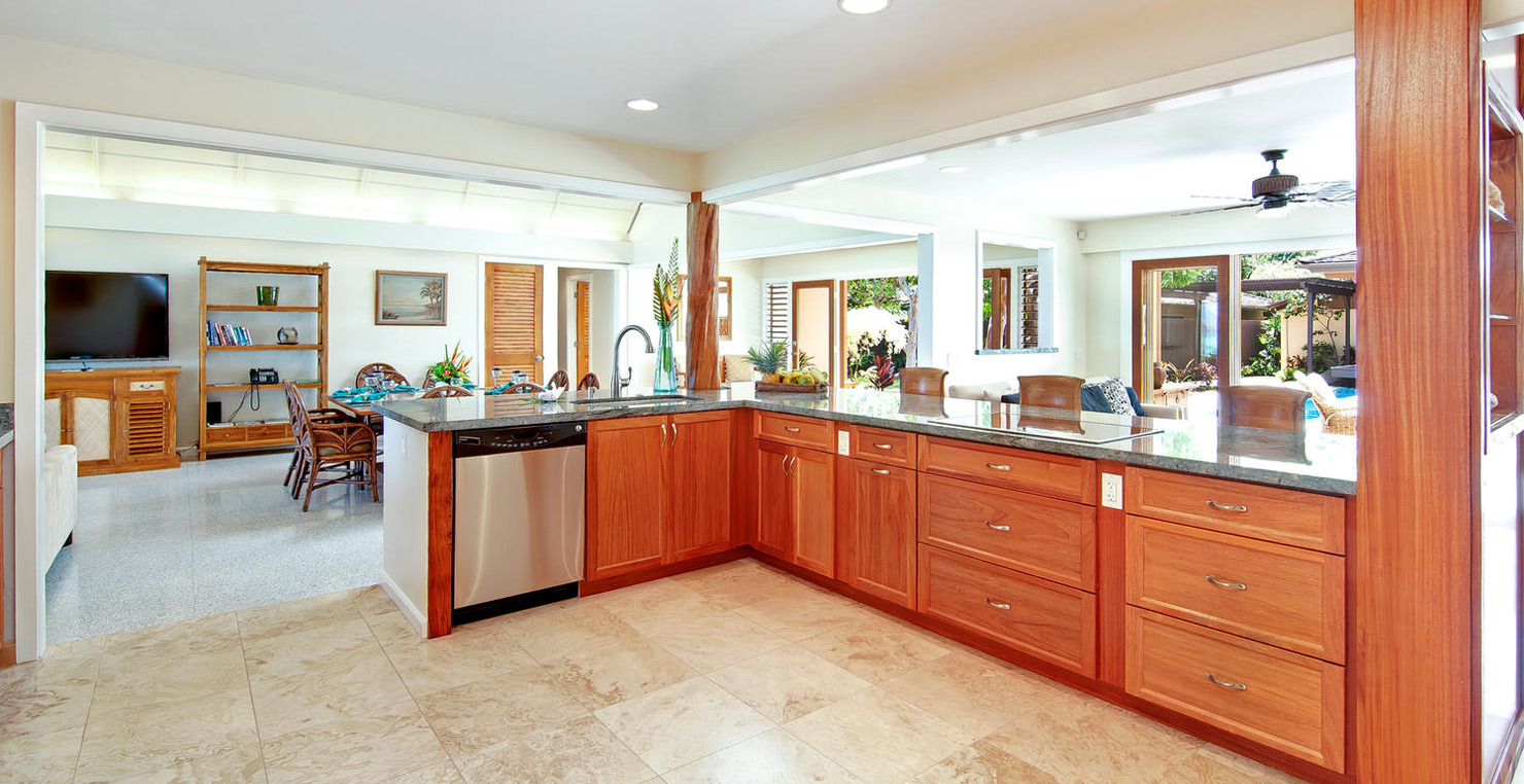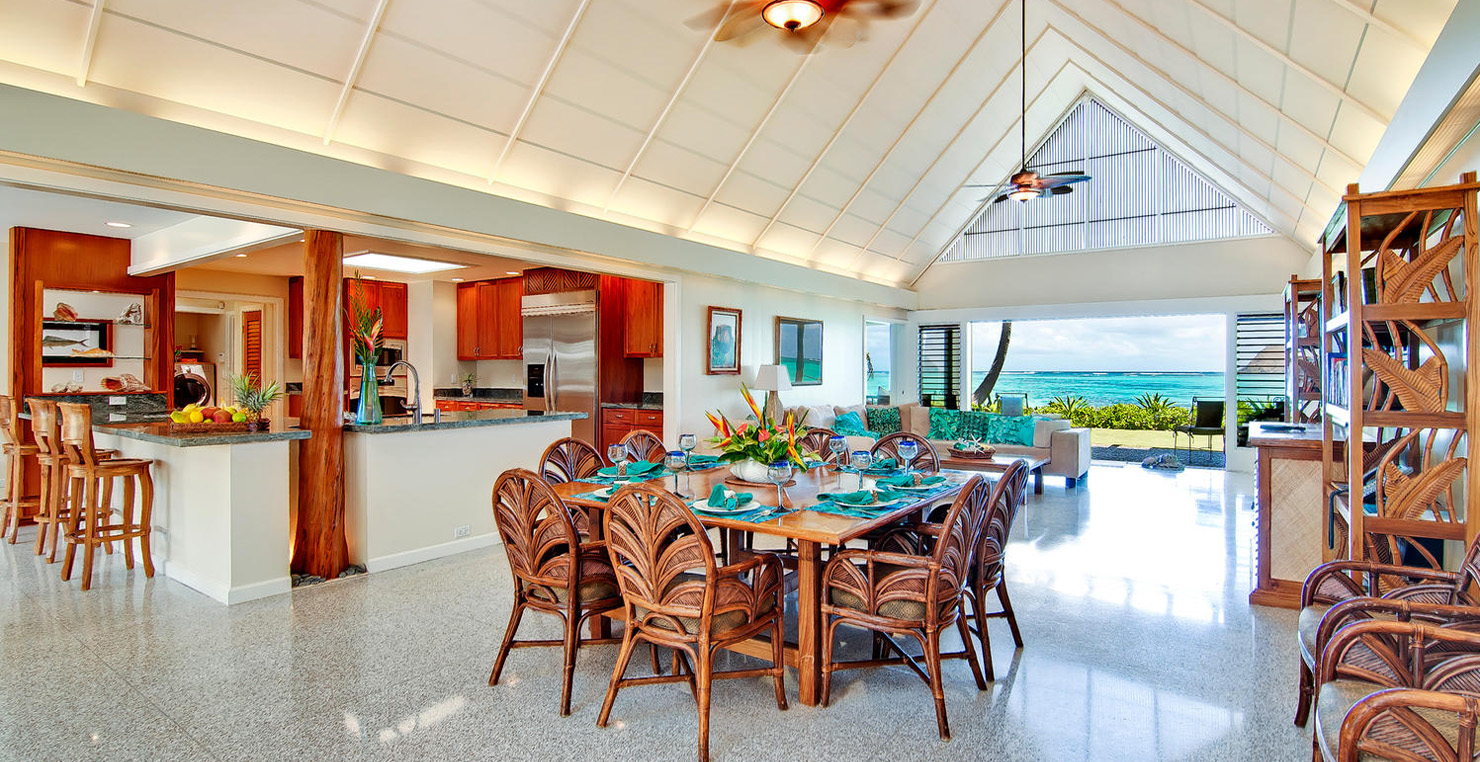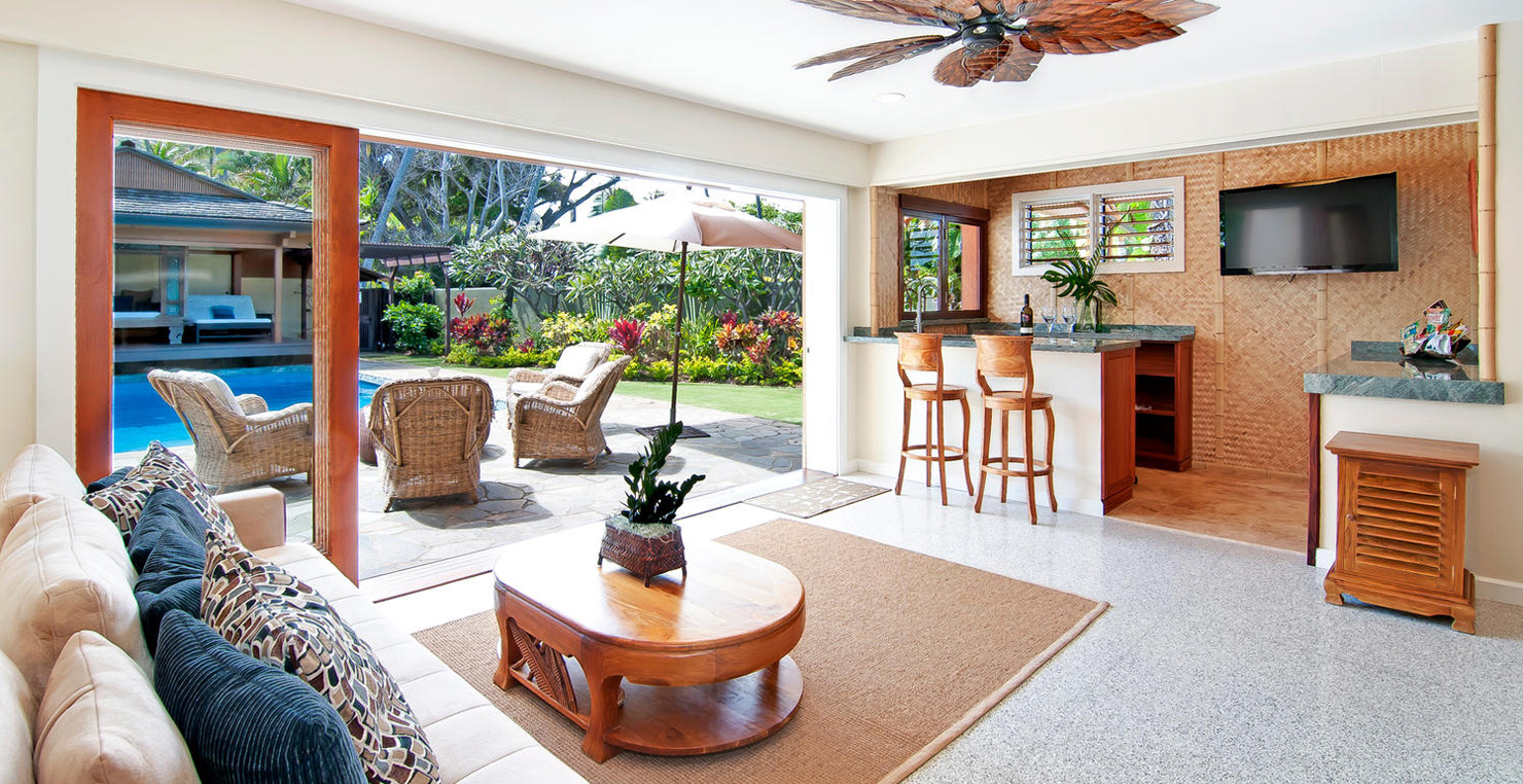 Mokulua Nui houses a gourmet kitchen for you to make your morning "Loco Moco", and a full wet bar open to the pool area for mixing tropical cocktails! With four spacious bedrooms in the main house as well as two in a separate cottage, known locally as an “Ohana” unit, this home has plenty of space to accommodate family and friends. Bring your entourage, and start making memories at Mokulua Nui!
