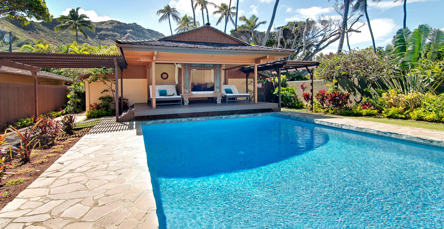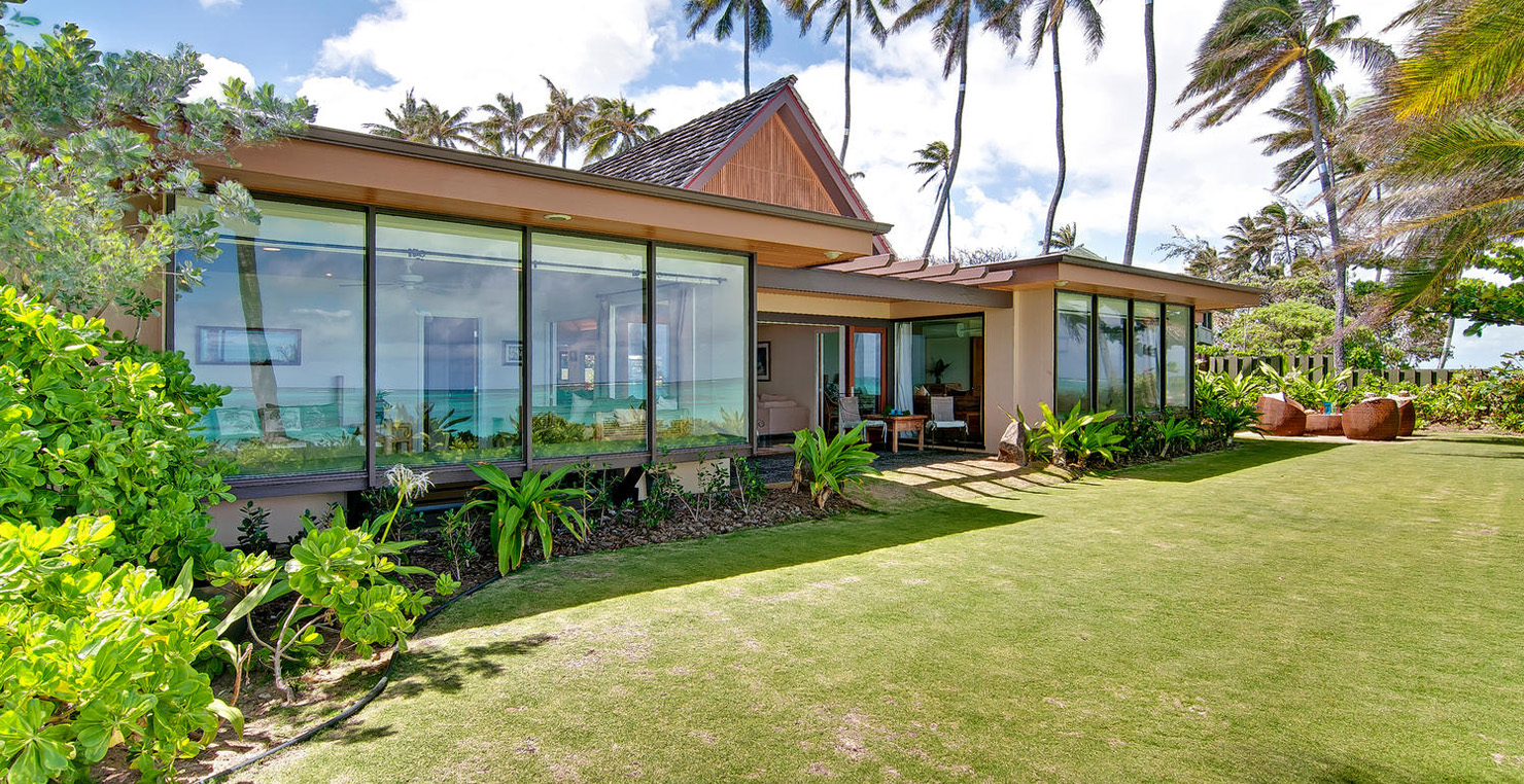 Whether you’re relaxing in the covered cabana by the pool, or soaking up sun on beautifully manicured lawn beside the ocean, this magnificent seaside home is perfect for unwinding. Gaze up at the Ko’olau mountain range and admire the raw beauty of the lush landscape, or turn around and envelop yourself in the breathtaking vista of the Pacific ocean.