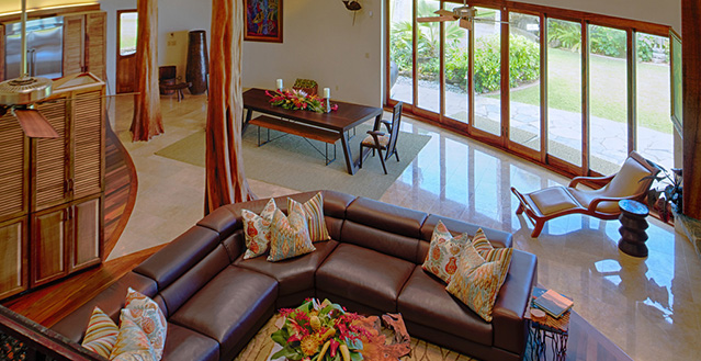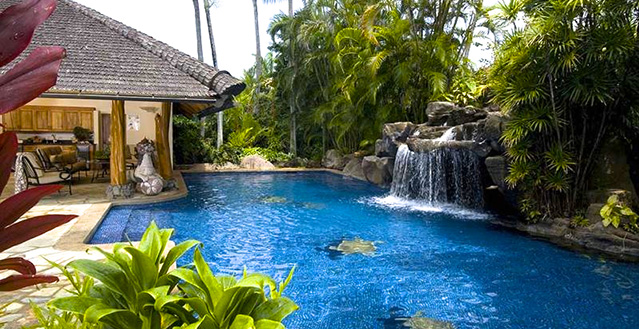 This incredible estate was the dream home of the late, world renowned hair care guru, Paul Mitchell. The Oceans Blue Estate combines contemporary amenities with superb traditional island craftsmanship. Carey Smoot of Source Tropical designed the estate as an early Hawaiian ideal with materials from Hawaii and Indonesia. The result is one of the most beautiful homes in Hawaii. Breathtaking ocean views, tropical structures with a soft and welcoming decor and the ideal beach location compare to none.