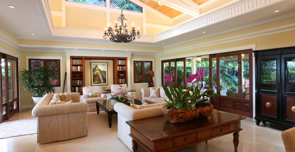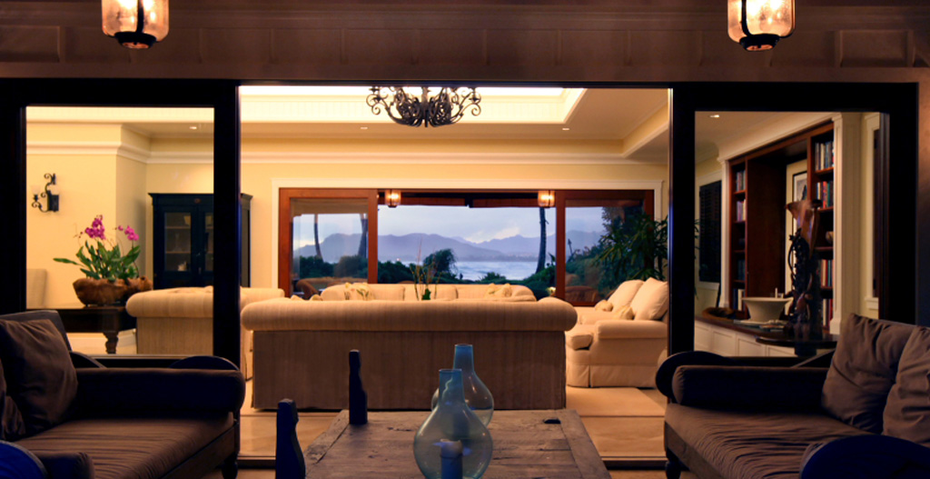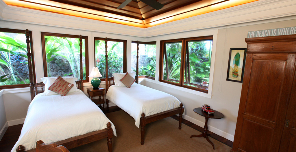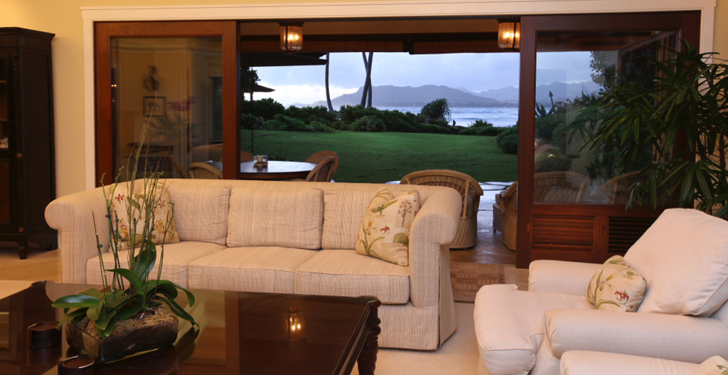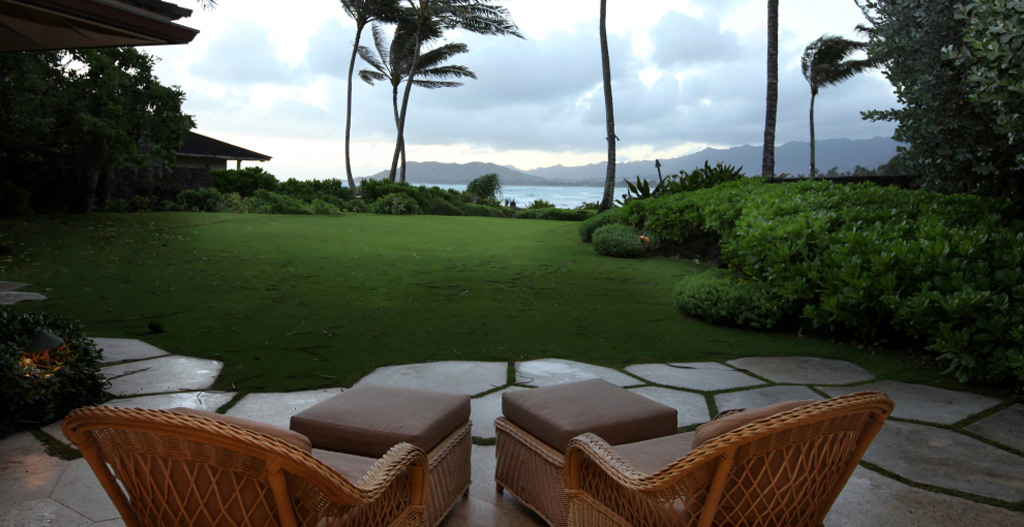 The Plantation Estate at Paradise Point on Kailua Bay is a single level 5 bedroom/6 bed, 5.5 bath beachfront luxury rental home. Located on Kailua Beach on the windward shore of Oahu, the elegant, yet comfortable estate is recognized for its presidential and celebrity-level security and privacy. The estate is ideal for a family vacation, a small corporate retreat or a romantic island getaway. Occupancy is limited to 10 overnight guests and the entire estate, including the outdoor property, is a non-smoking environment.