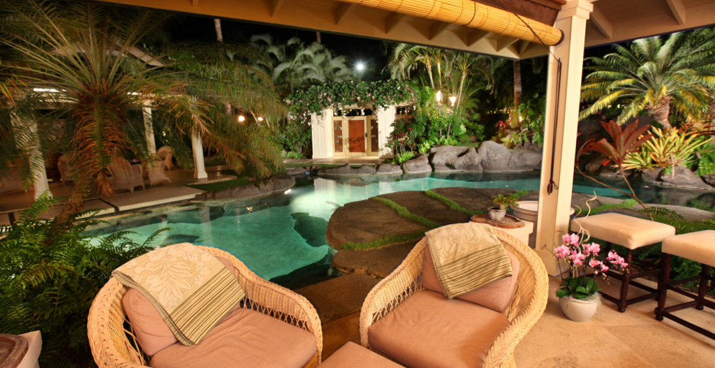 The outdoor centerpiece of the Plantation Estate is a jaw dropping courtyard that features a secluded, heated lagoon-style pool and pool pavilion including tropical waterfalls and a lavish island spa.