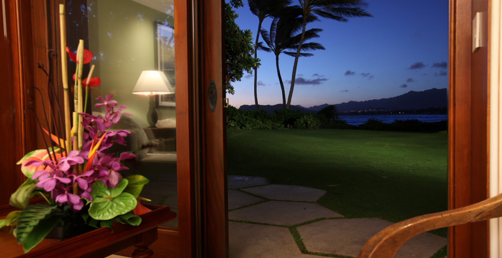 The 5 bedroom 5.5 bath exclusive five-star Plantation Estate at Paradise Point at Kailua Bay, located in a gated community 25 minutes from Honolulu, offers classic beachfront elegance at its finest. If you desire the highest in quality, Paradise Point Estates is the best luxury beachfront rental in Kailua Bay.