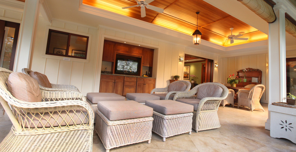 Beautifully furnished covered lanais bring the indoors outside year-round in this beachfront luxury rental. The oceanfront lanai showcases ornate landscaping and stunning views