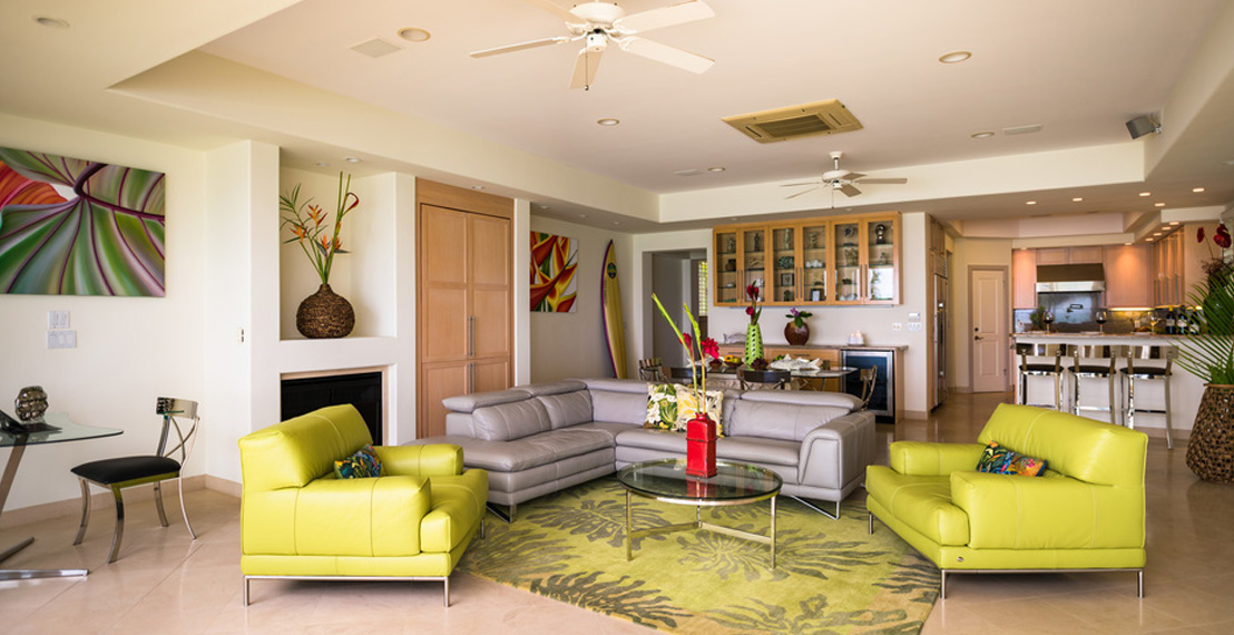 This stunning home features 3100 square feet with high quality finishes, including limestone, granite, and marble. Each of the four bedrooms includes its own full bathroom. The master bedroom affords floor-to-ceiling sliding glass doors with incredible ocean views. The three other bedroom suites enjoy views of the one-of-a-kind neighborhood and mountains. Two of those bedrooms feature small sitting lanais.