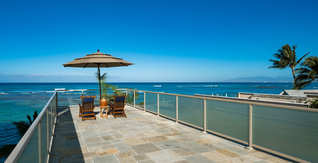 This high-end, multi-level, contemporary, oceanfront home is located in one of the most desirable neighborhoods of Waikiki / Diamond Head with ocean access to popular surf spots.