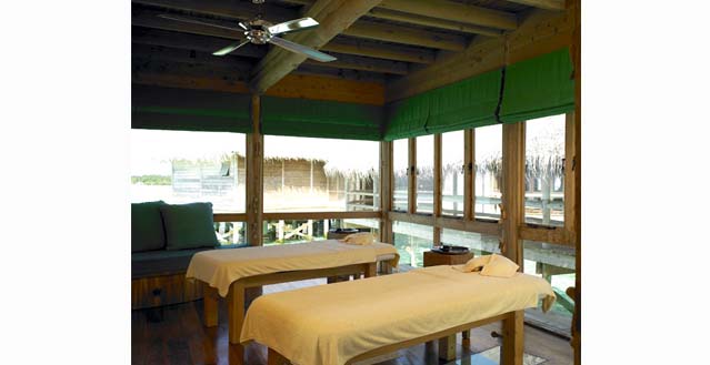 Private spa facility with sauna, steam room, indoor and outdoor treatment pavilion and upstairs air-conditioned gymnasium