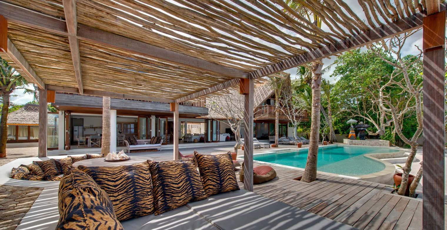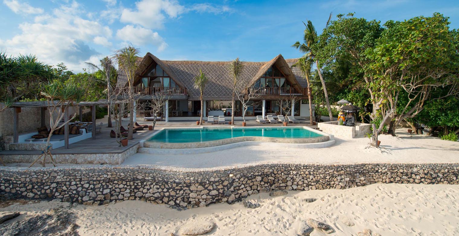 Created as a luxury beach home for couples, groups of friends and extended families, this beautifully designed five-bedroom beachfront villa is set on the crescent of Sandy Bay adjacent to Sandy Bay Beach Club on Nusa Lembongan.